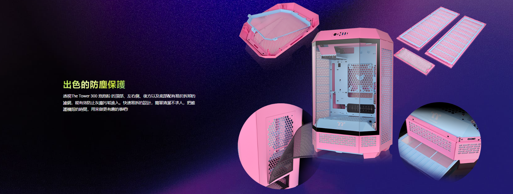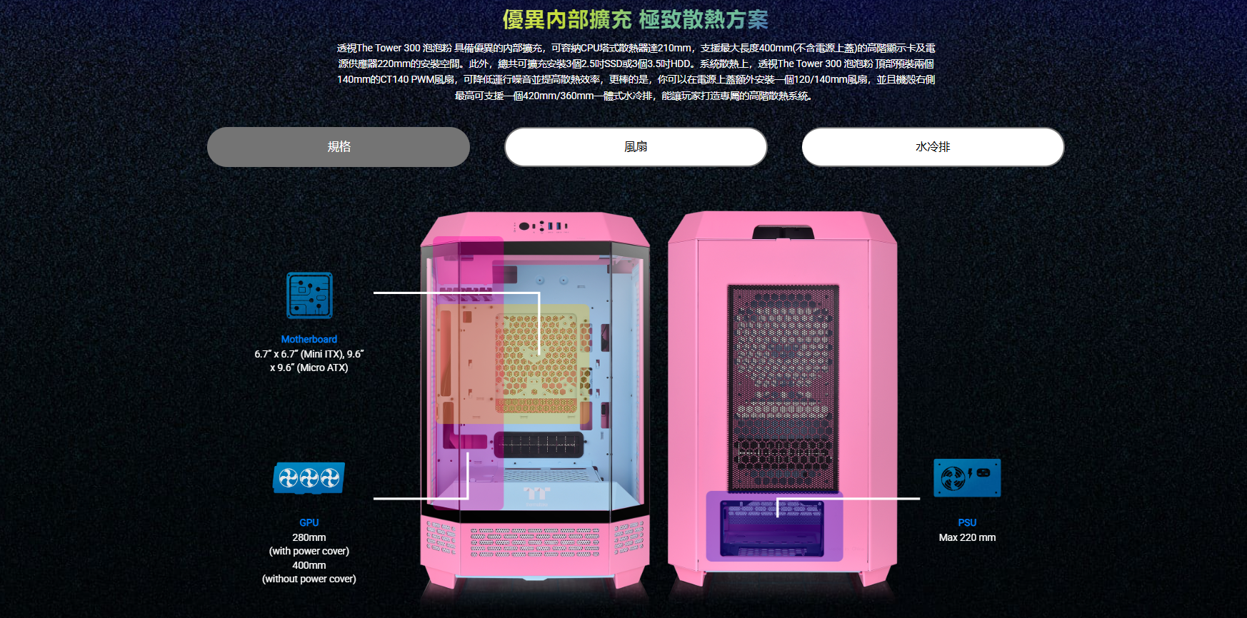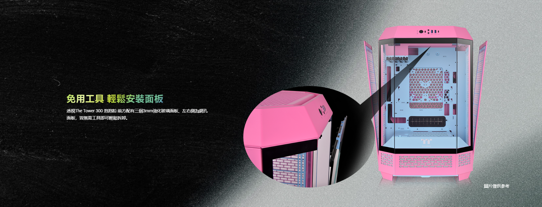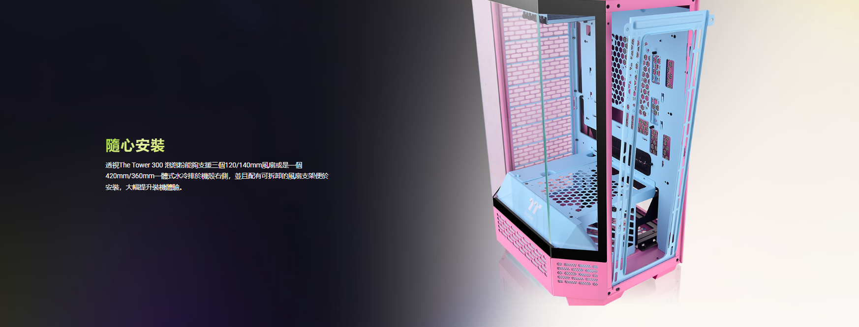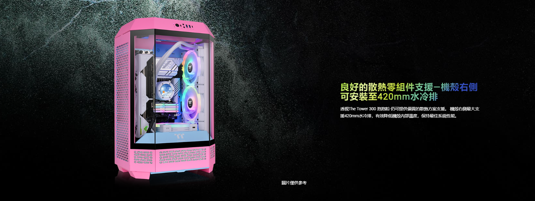 曜越 The Tower 300 泡泡粉 顯卡長40/U高21/全景直立式/三面玻璃/支援背插/M-ATX
