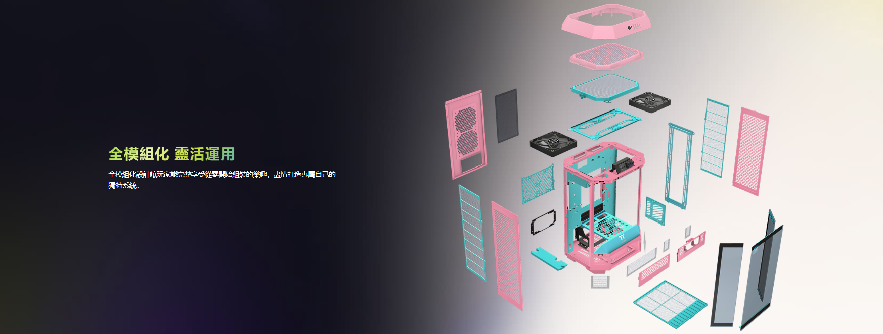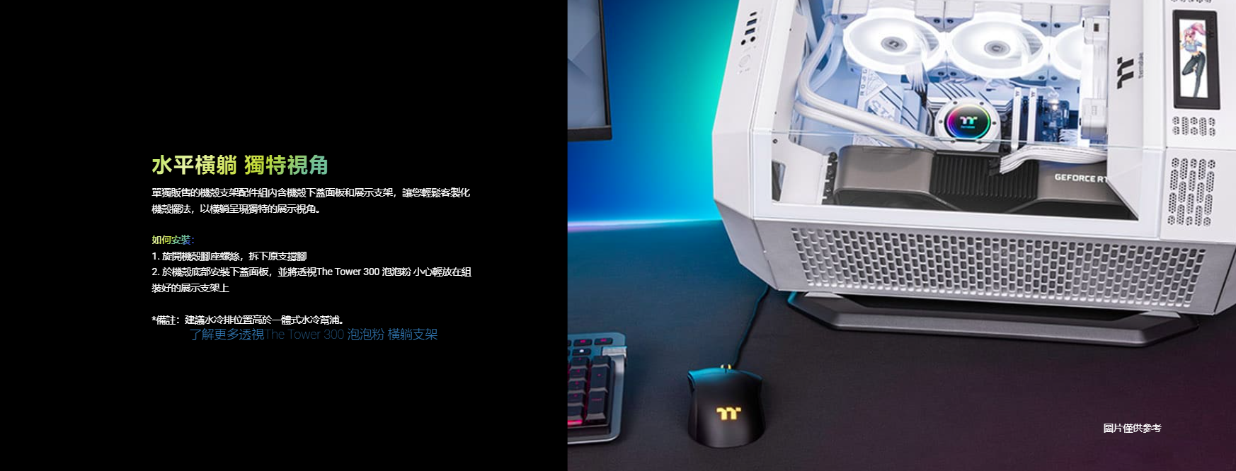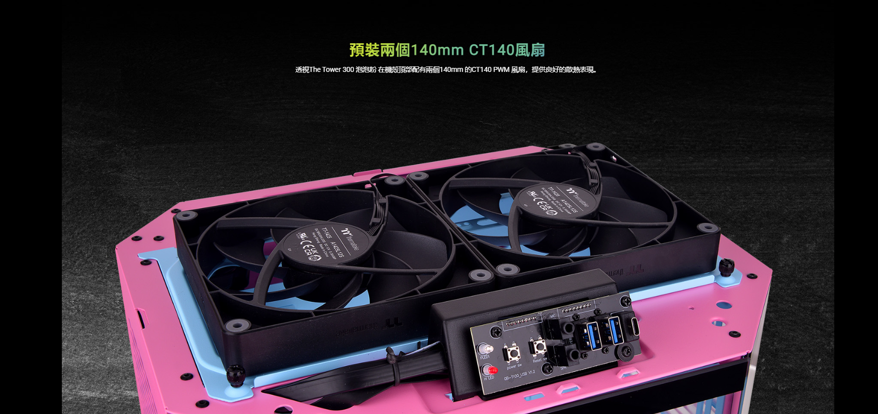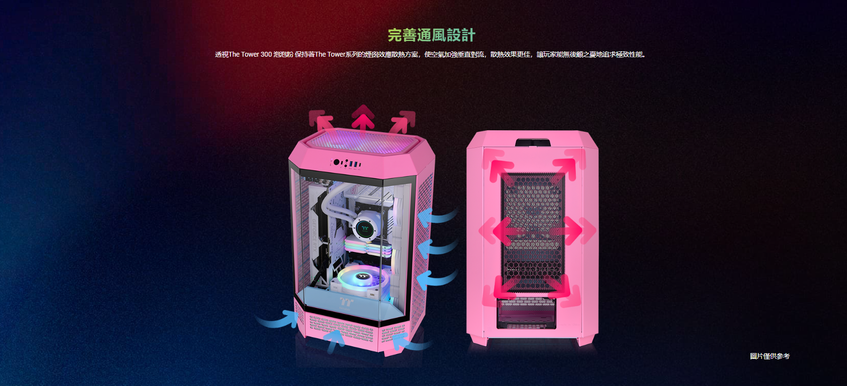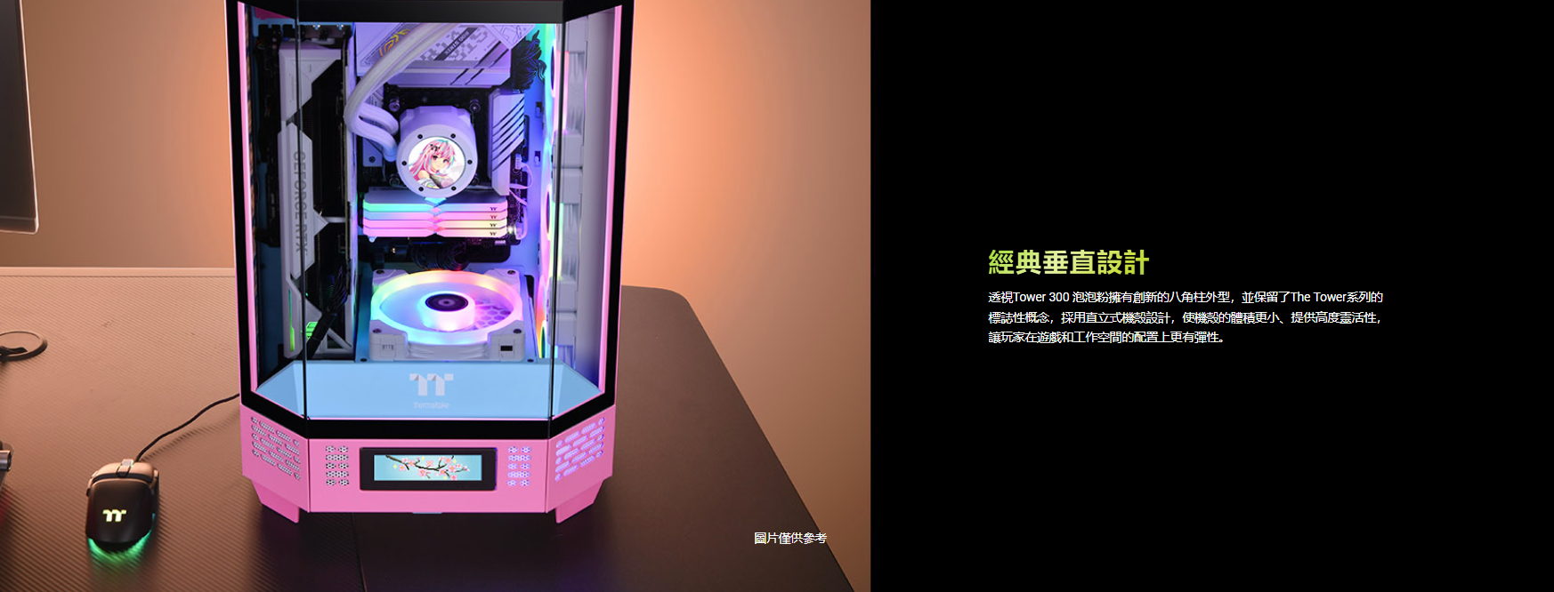 曜越 The Tower 300 泡泡粉 顯卡長40/U高21/全景直立式/三面玻璃/支援背插/M-ATX