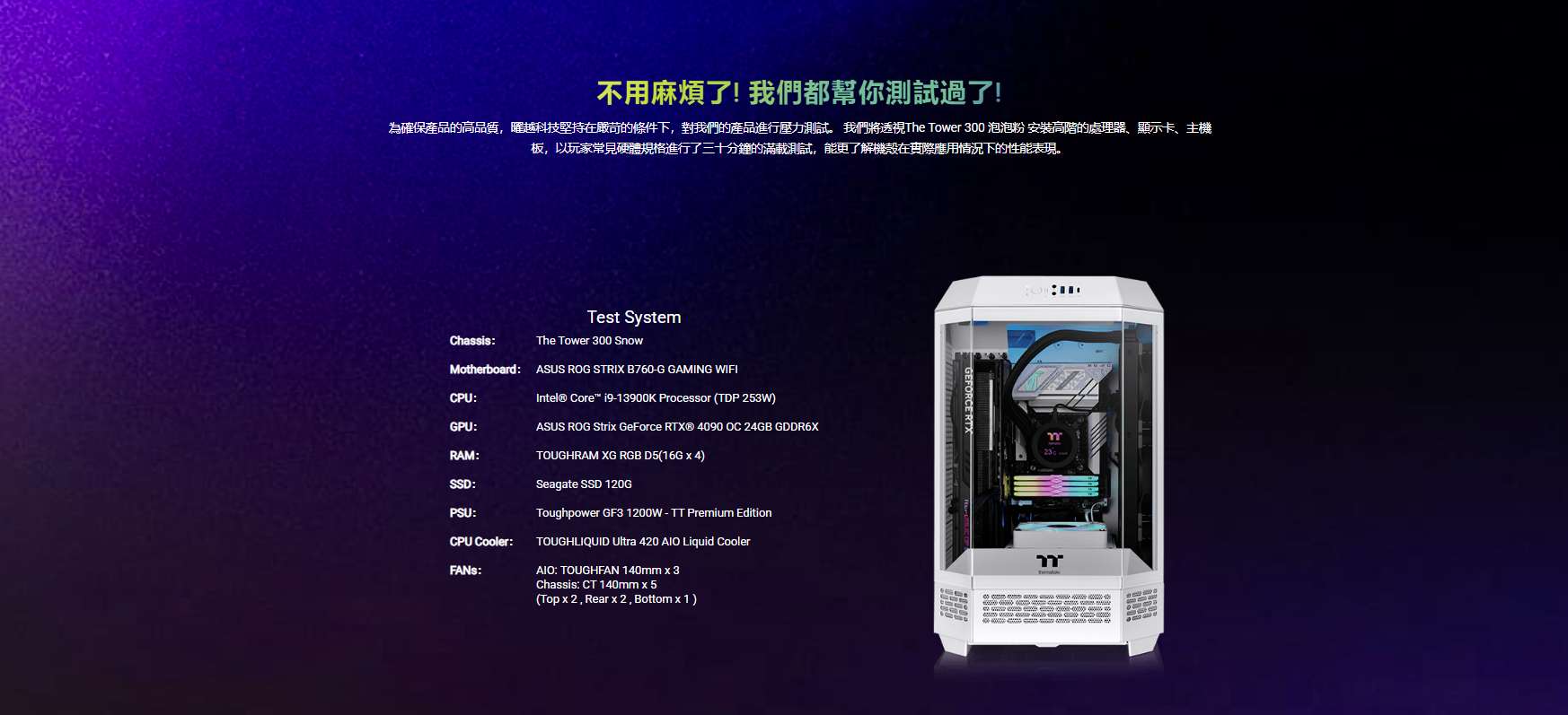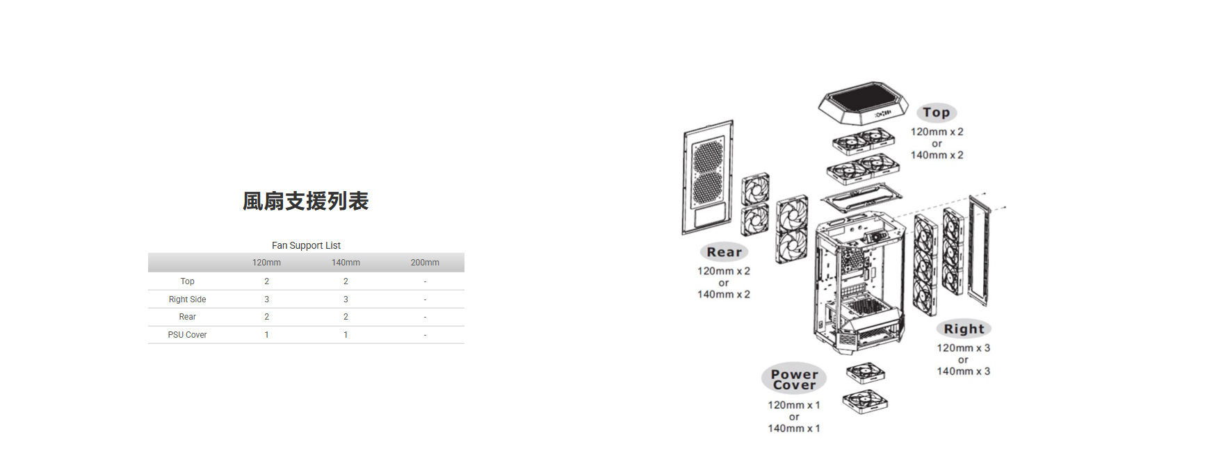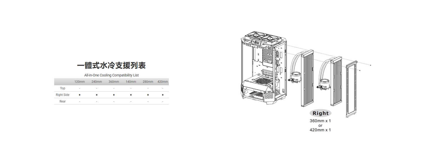 ✦ 良好的散熱零組件支援—機殼右側可安裝至420mm水冷排
