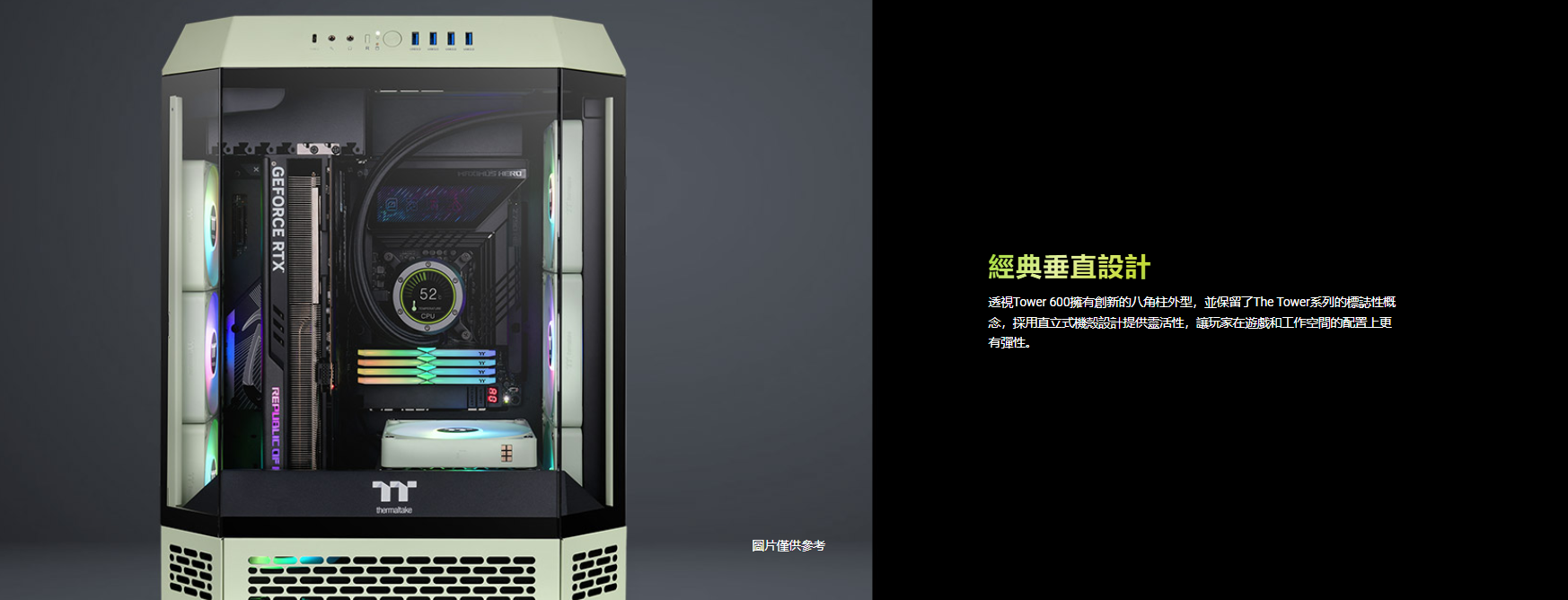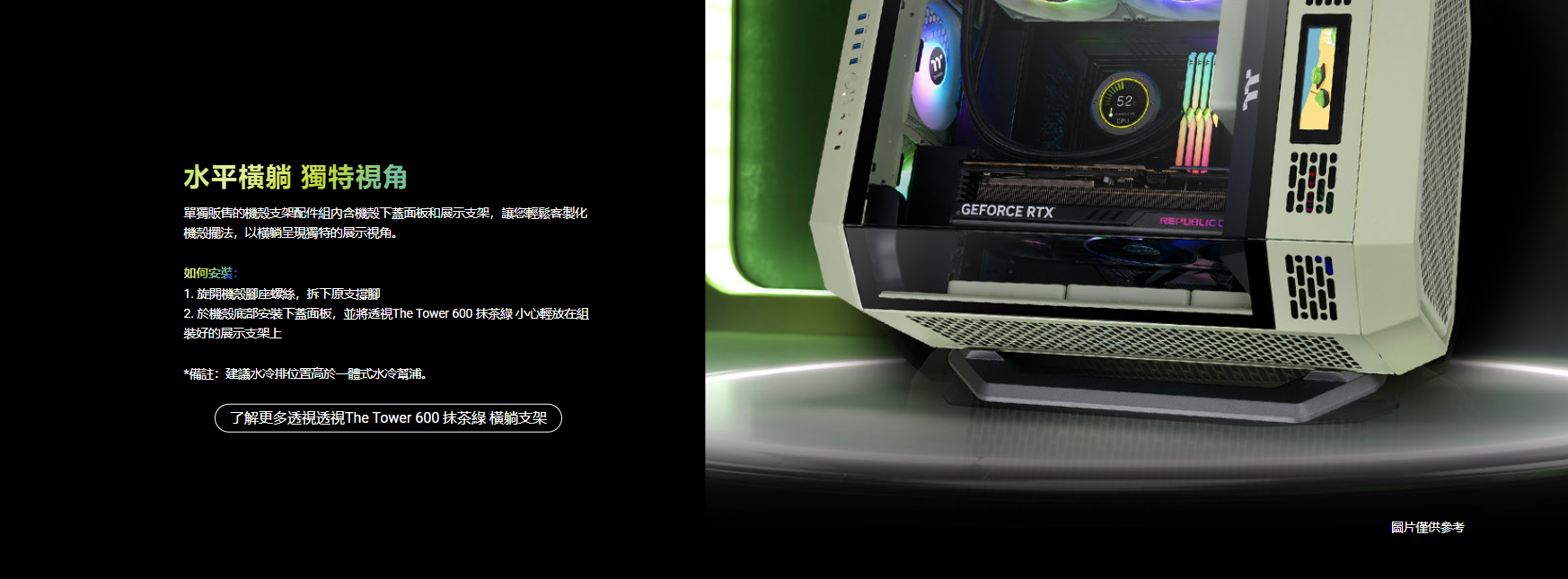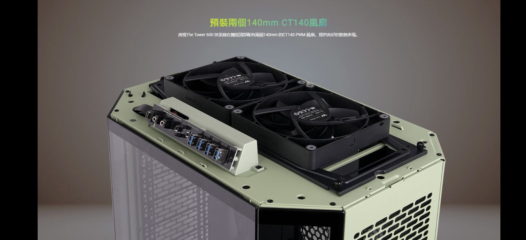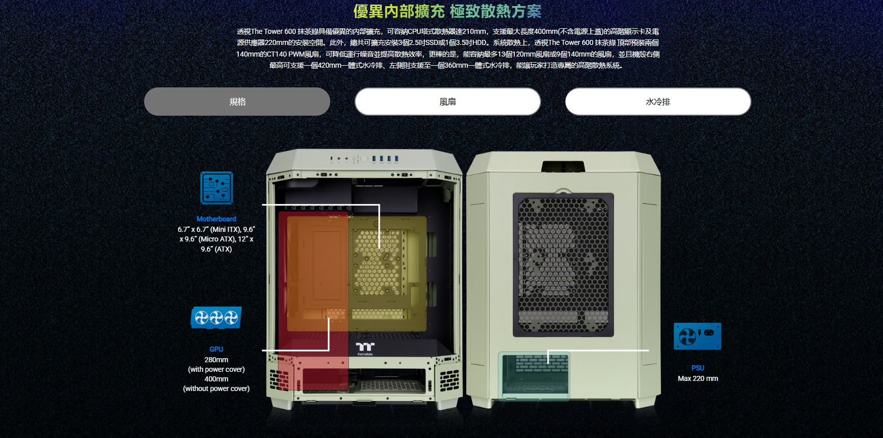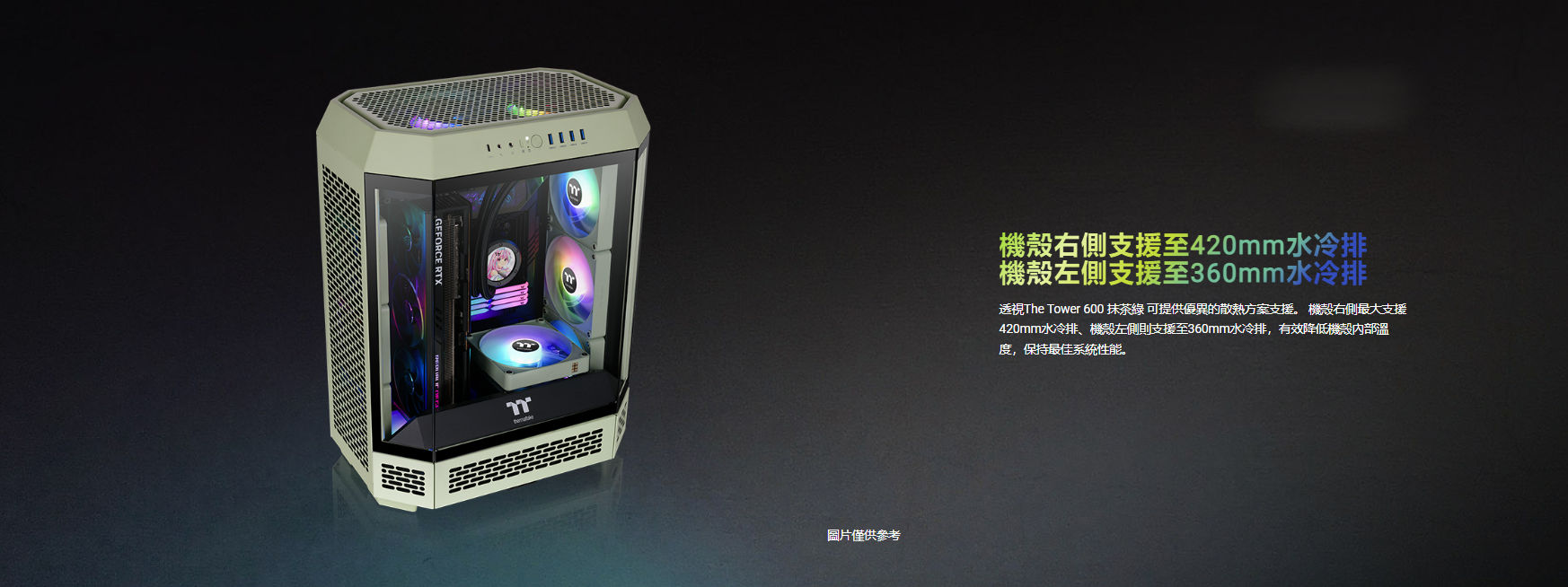 曜越 The Tower 600 抹茶綠 顯卡長28(40)/U高21/全景直立/三面玻璃/支援背插(限ATX)