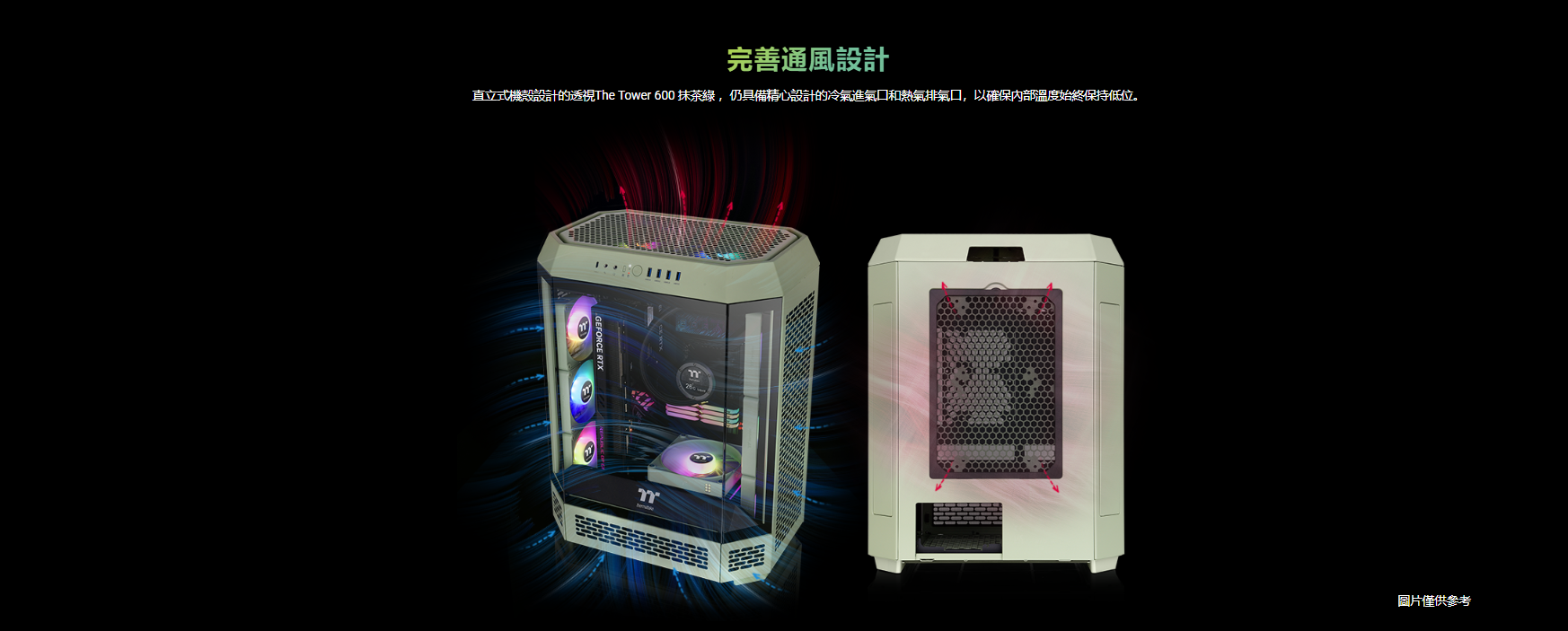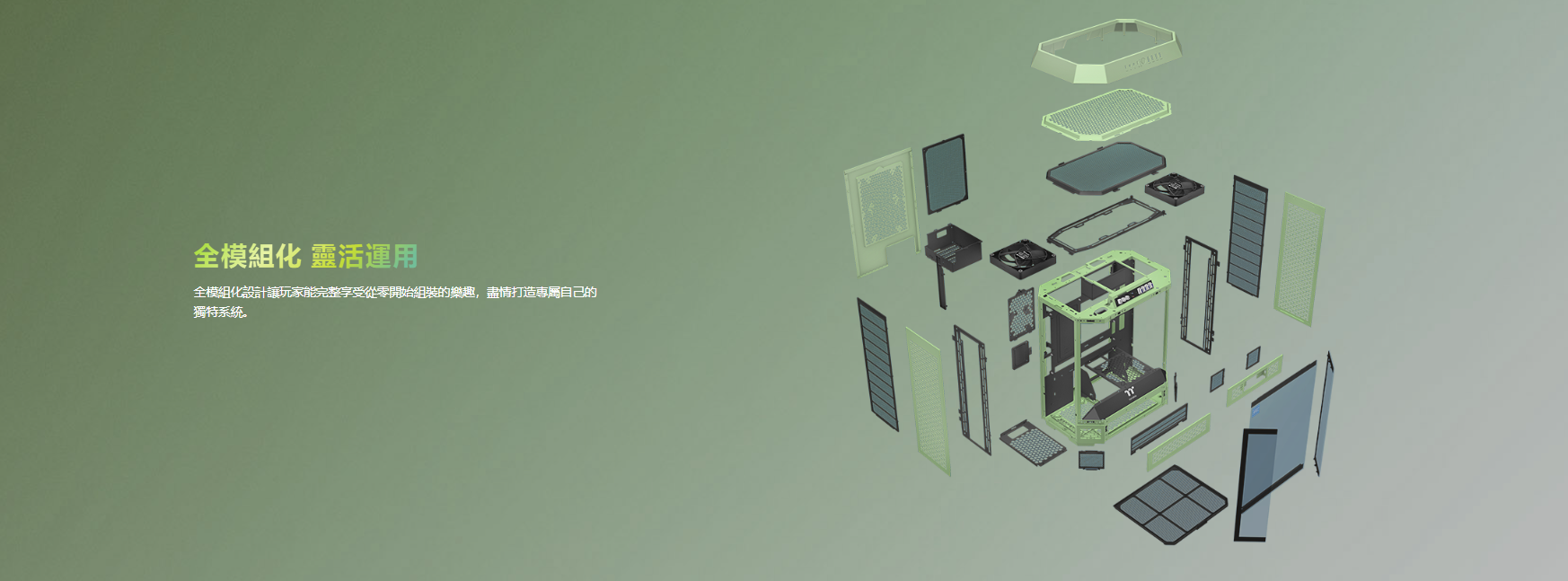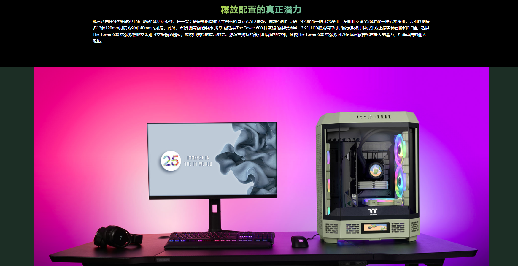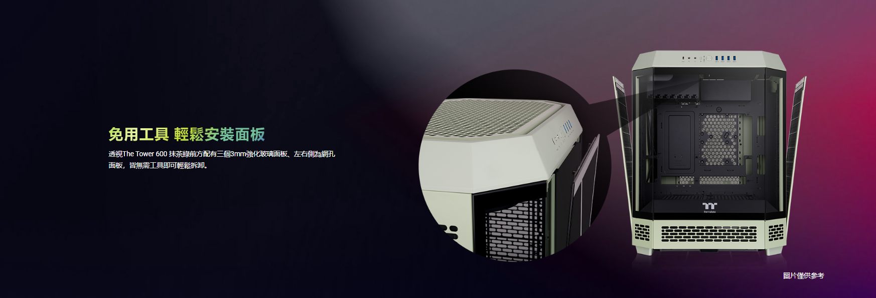 曜越 The Tower 600 抹茶綠 顯卡長28(40)/U高21/全景直立/三面玻璃/支援背插(限ATX)