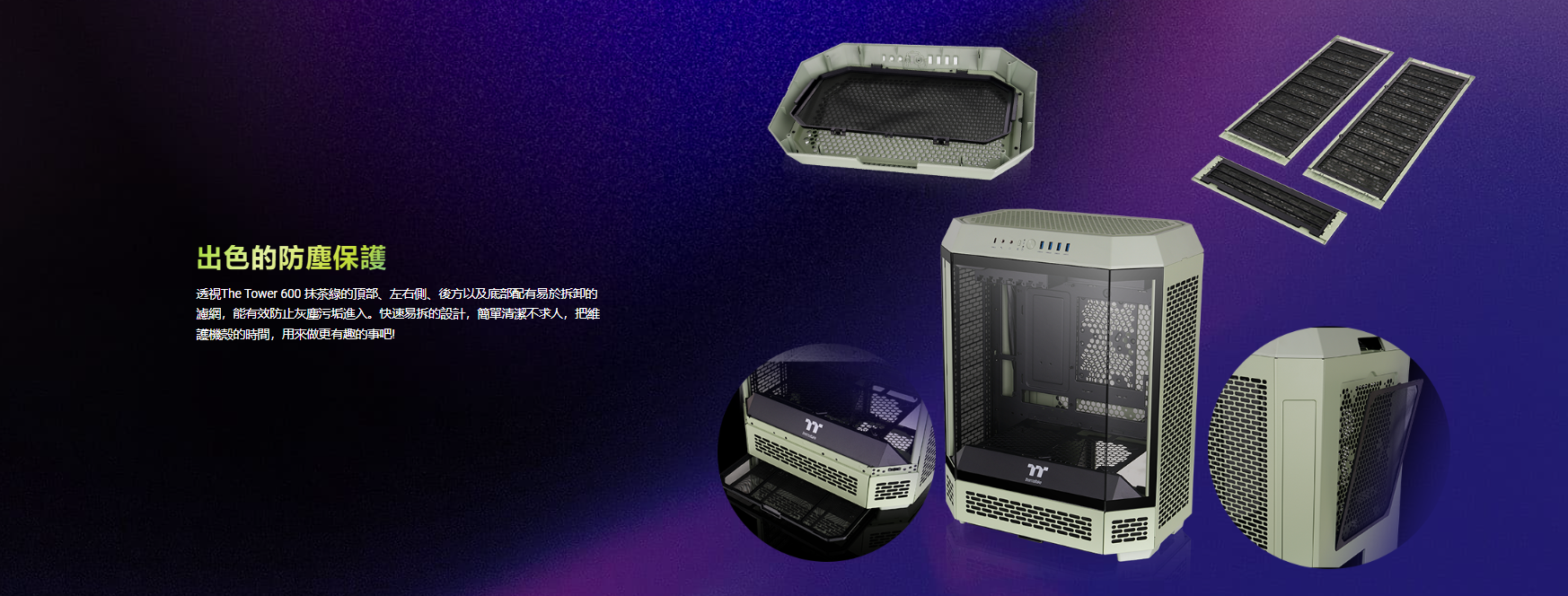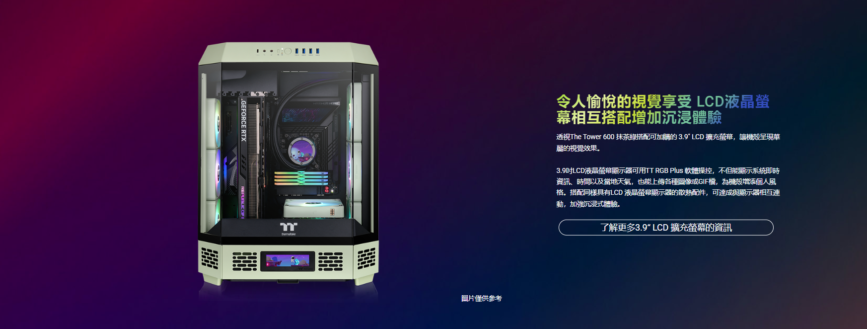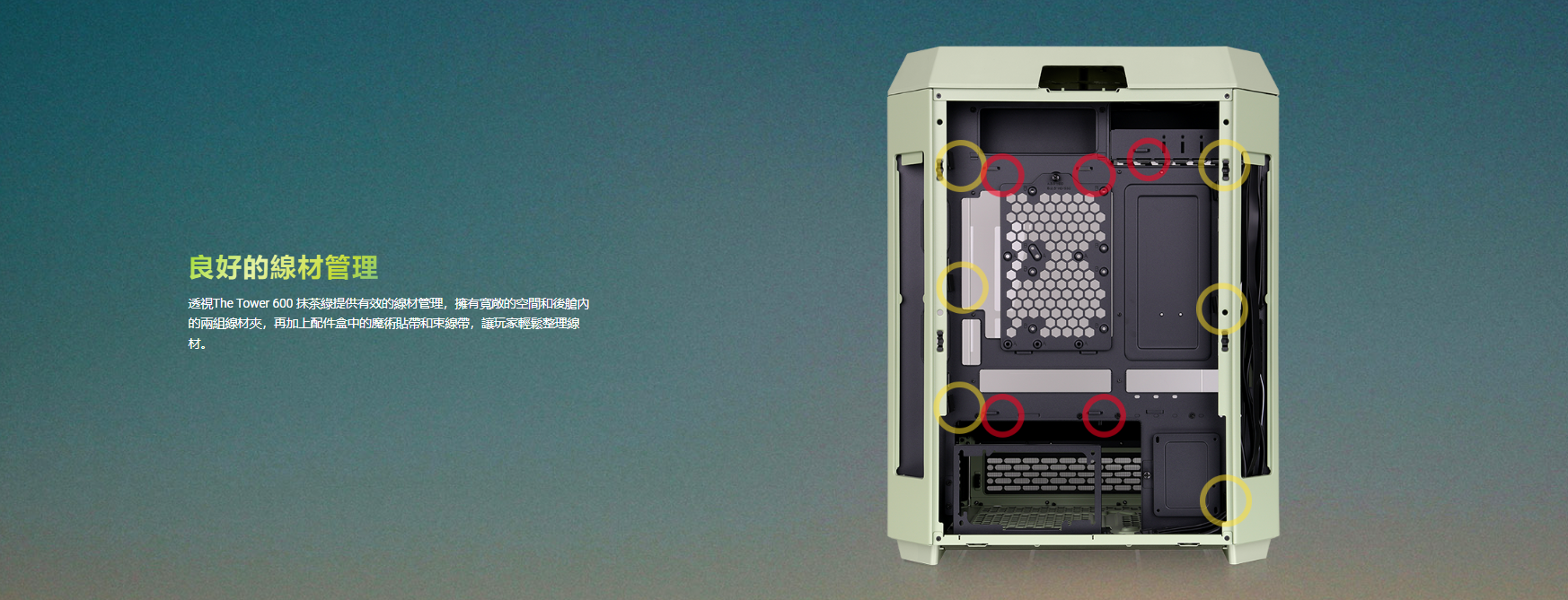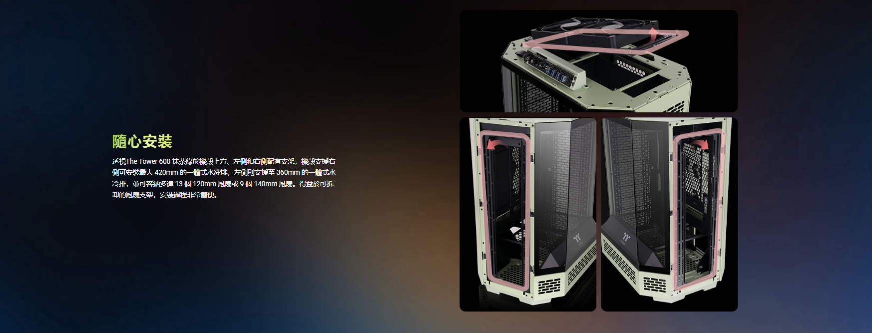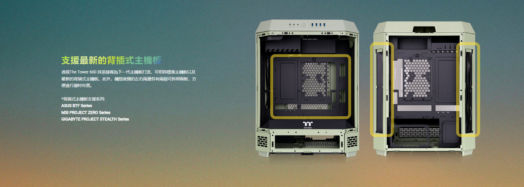 曜越 The Tower 600 抹茶綠 顯卡長28(40)/U高21/全景直立/三面玻璃/支援背插(限ATX)