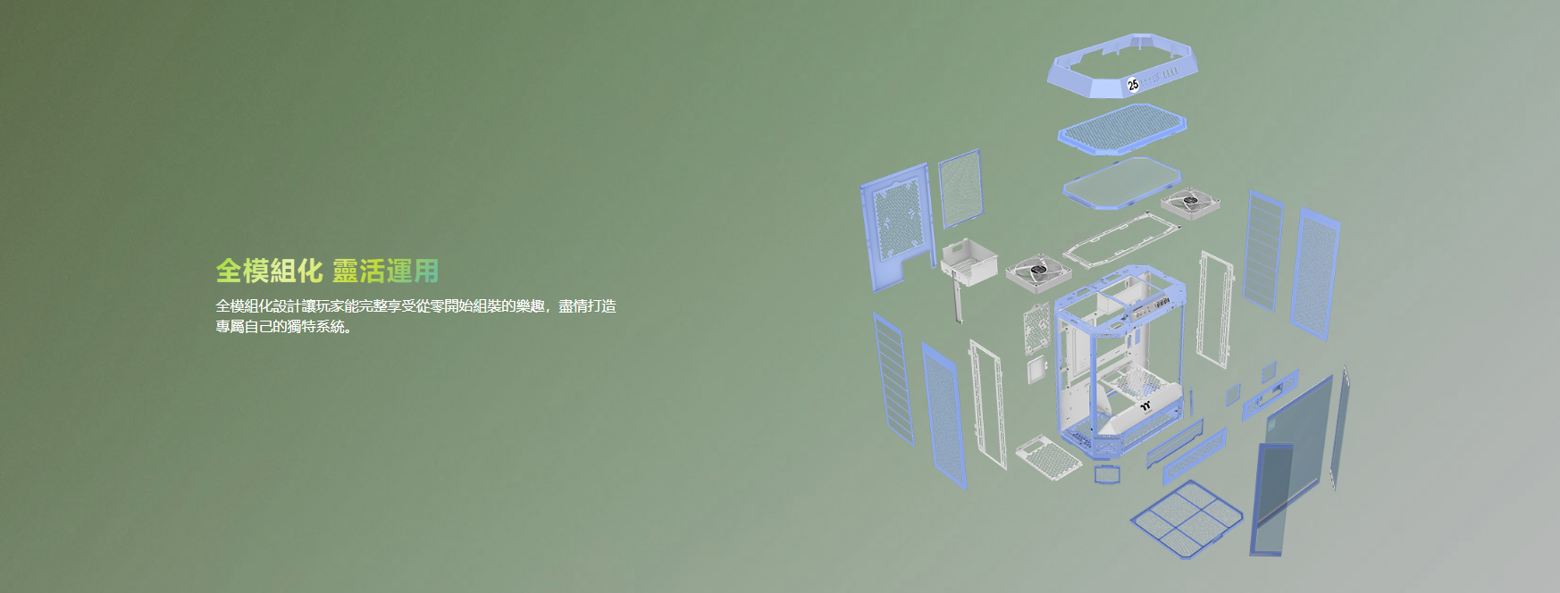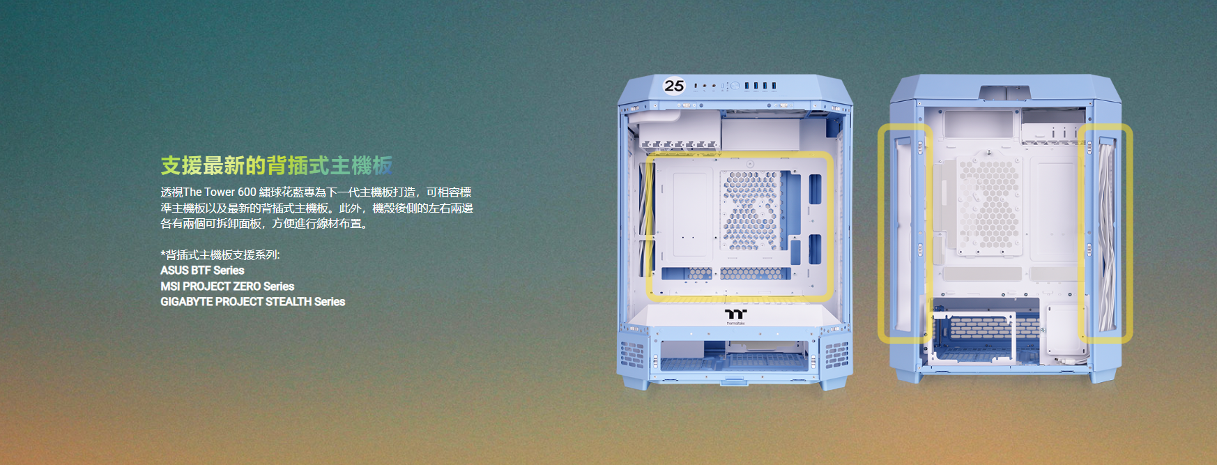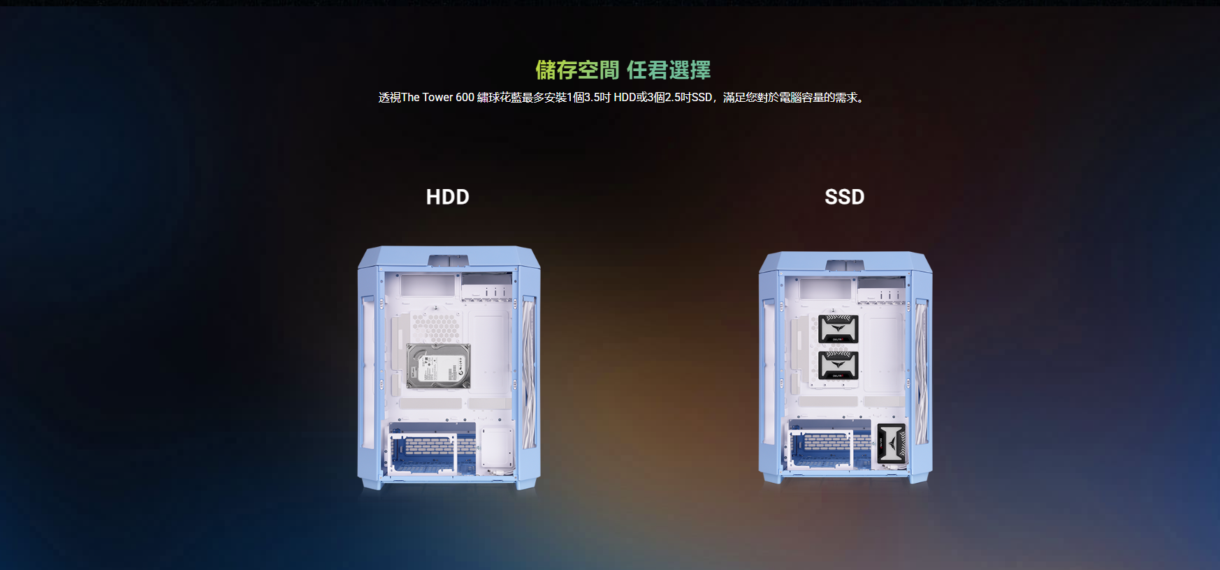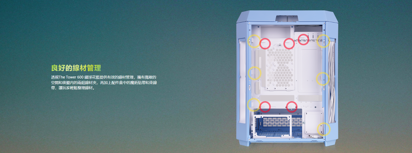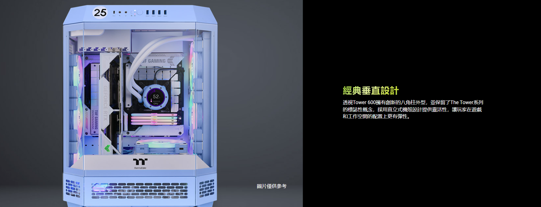 曜越 The Tower 600 繡球花藍 顯卡長28(40)/U高21/全景直立/三面玻璃/支援背插(限ATX)