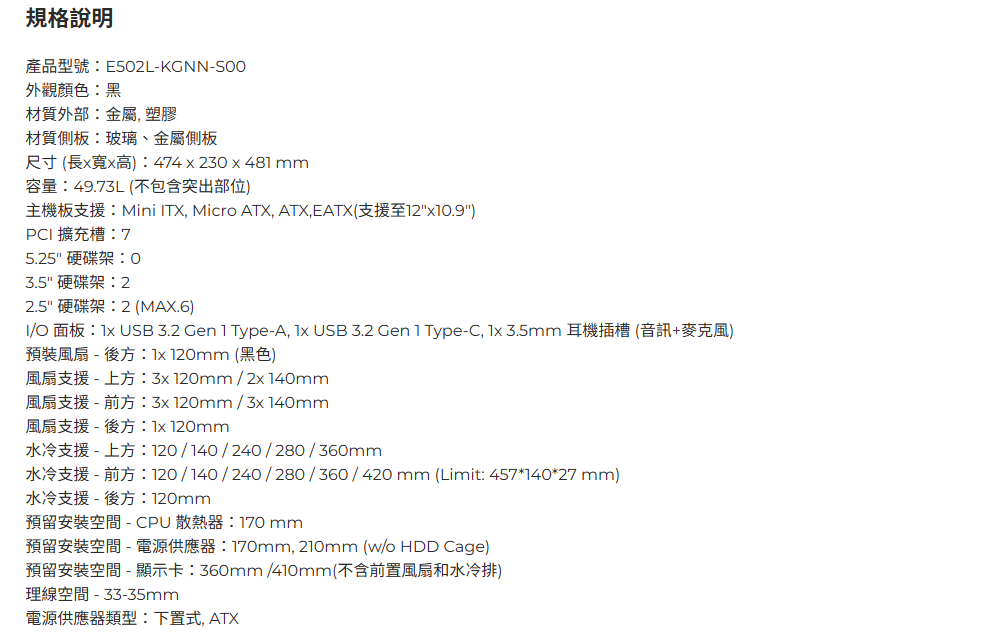 酷碼 Elite 502 Lite 黑 顯卡長41/CPU高17/玻璃透側/支援背插/ATX