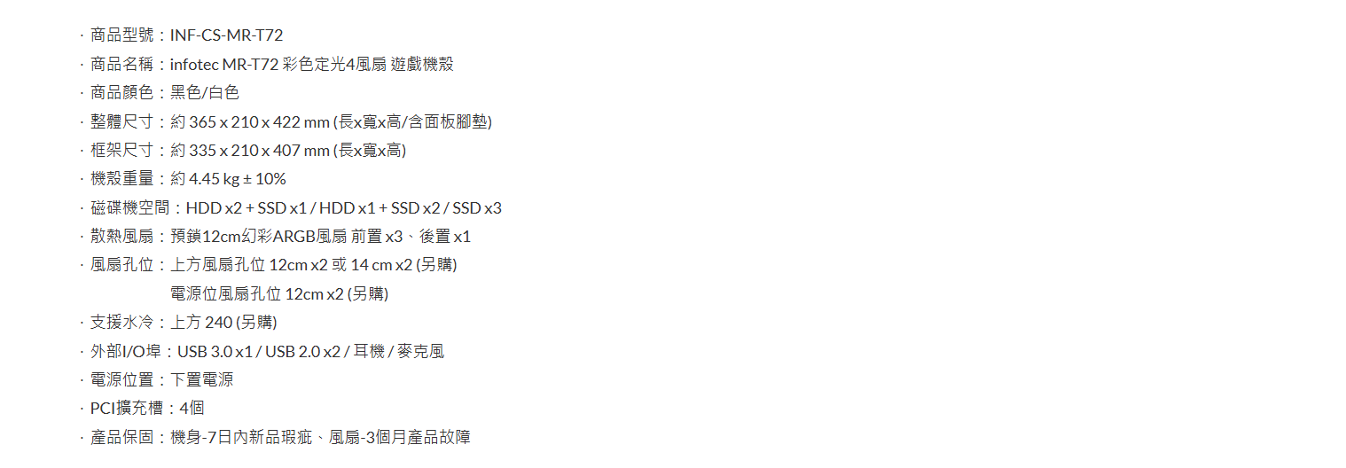 ● 機殼另配置4個12cm風扇孔位(上方x2、電源位x2)