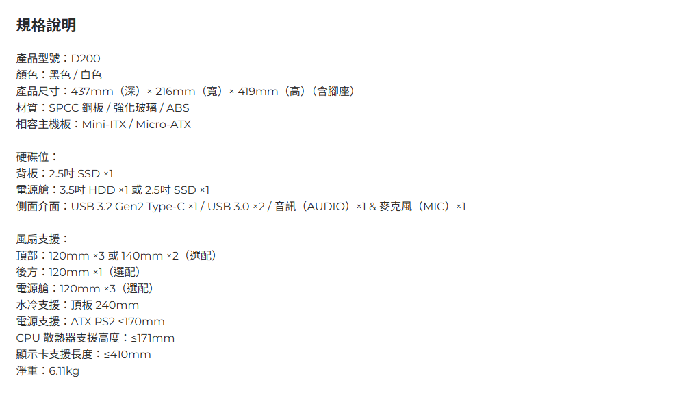 • 極大裝機相容性,顯示卡長度:最長 410mm, CPU 散熱器高度:最高 171mm, 電源支援:ATX PSU(最長 170mm)