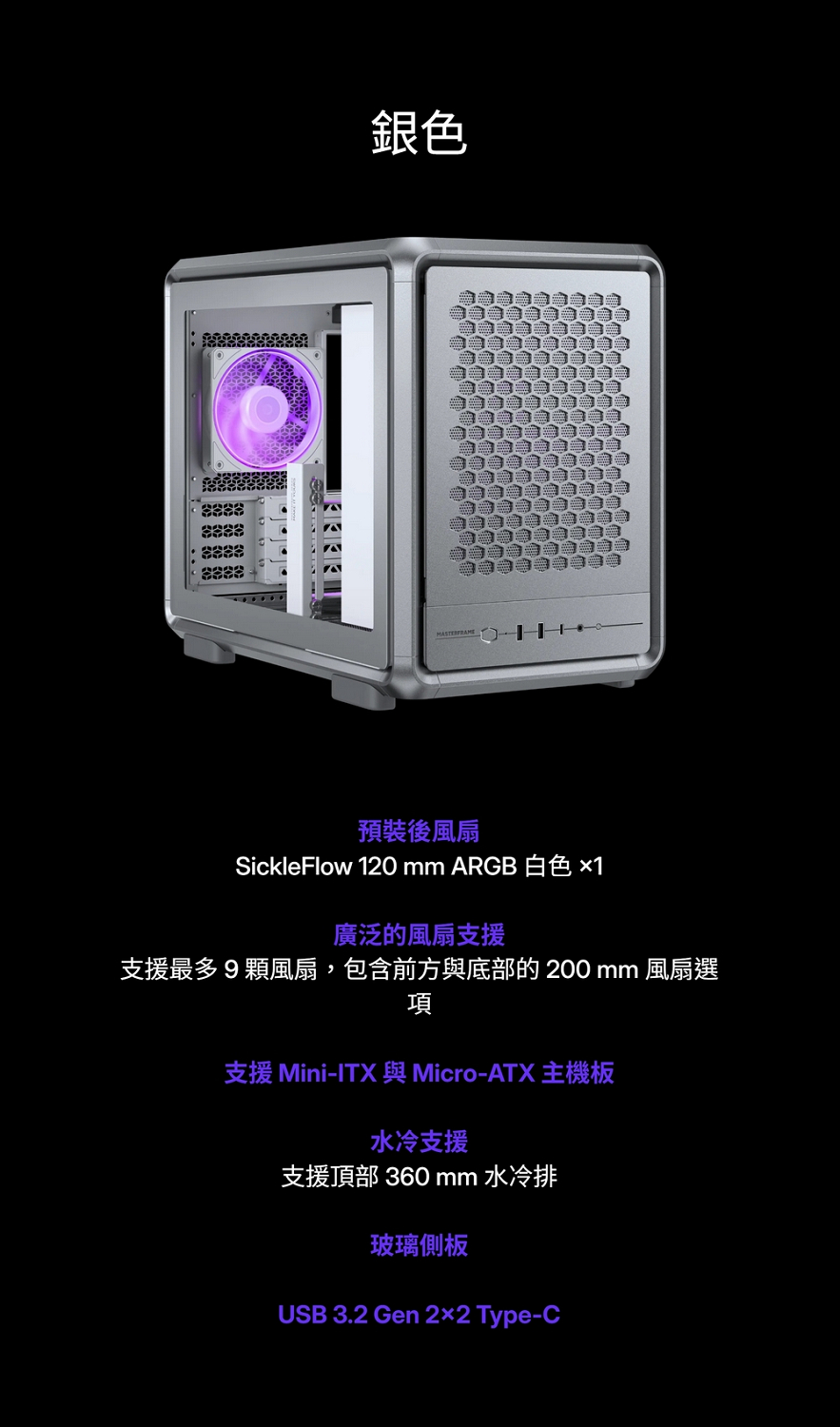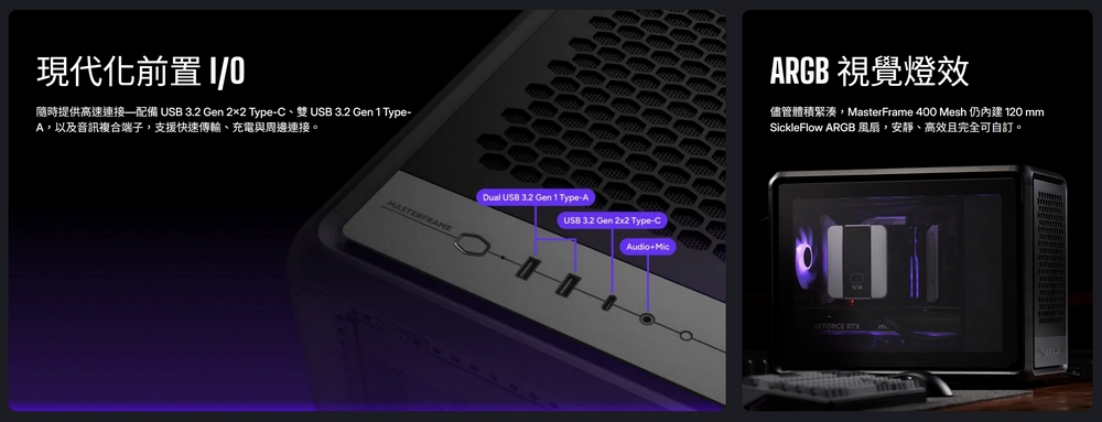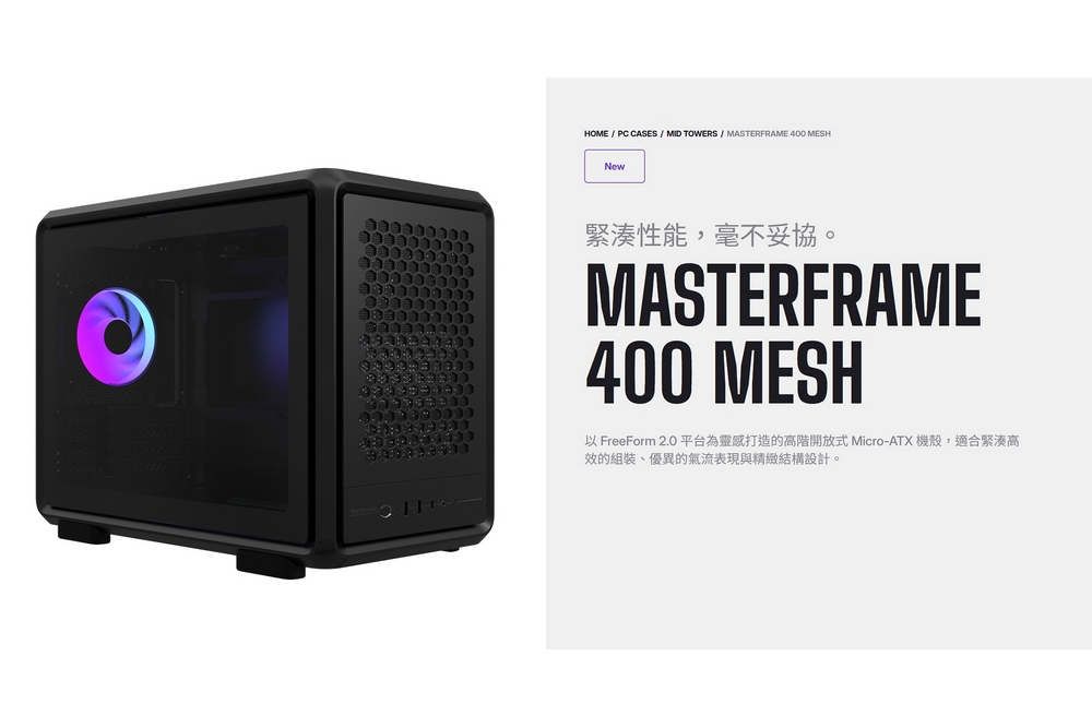 酷碼 MasterFrame 400 Mesh 銀 顯卡長39/CPU高19/玻璃透側/雙向擺放/M-ATX