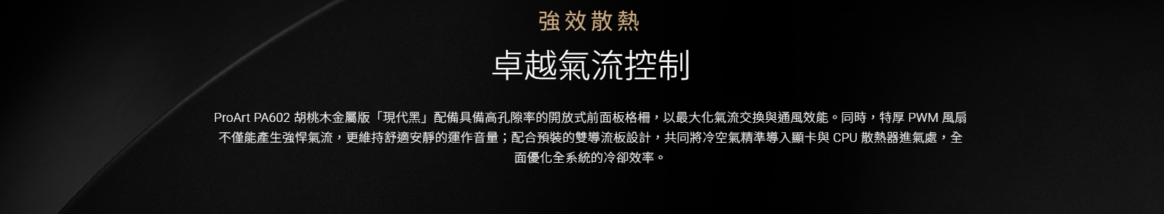 ✦ 卓越熱能管理: 內建兩組導流板,將冷空氣精準引導至主機板與核心零組件,實現散熱效率極大化