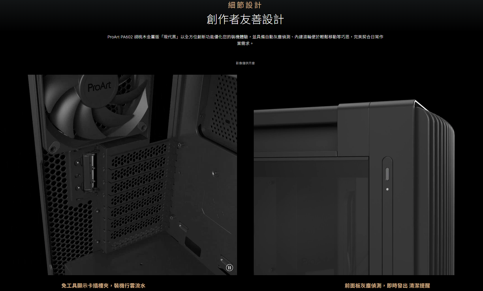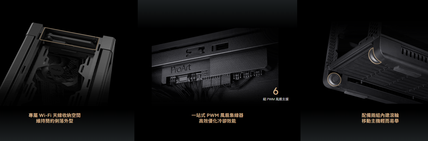 ✦ 創作者友善設計: 免工具顯示卡安裝、內建顯卡支撐架與風扇集線器,全面優化組裝體驗