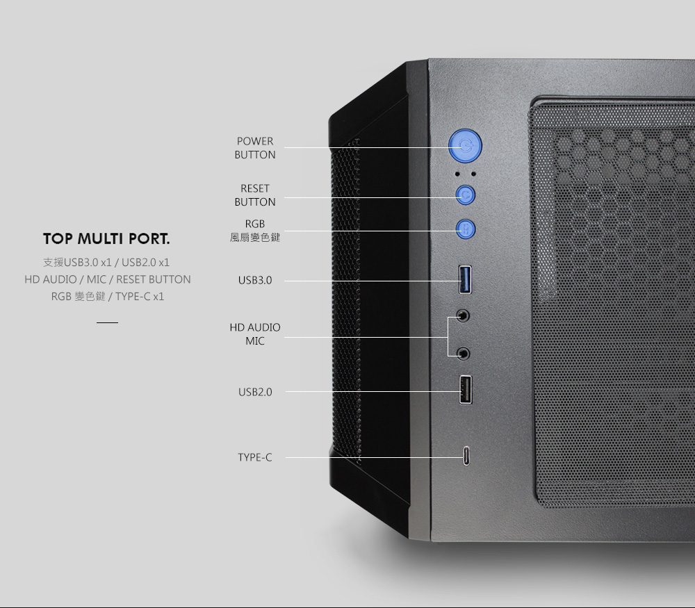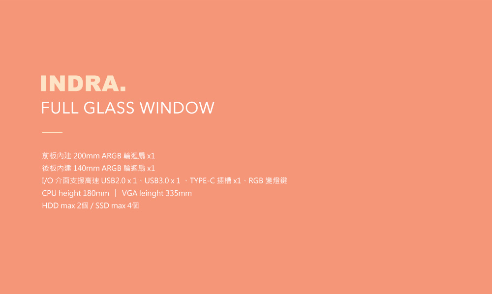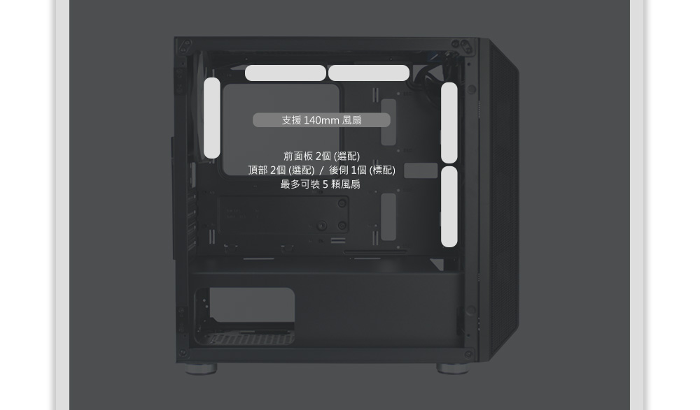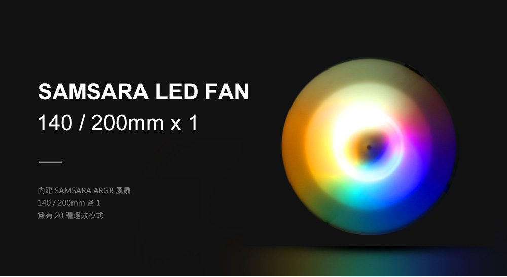 • 內建前20cm & 後14cm Samsara輪迴ARGB 風扇各1
