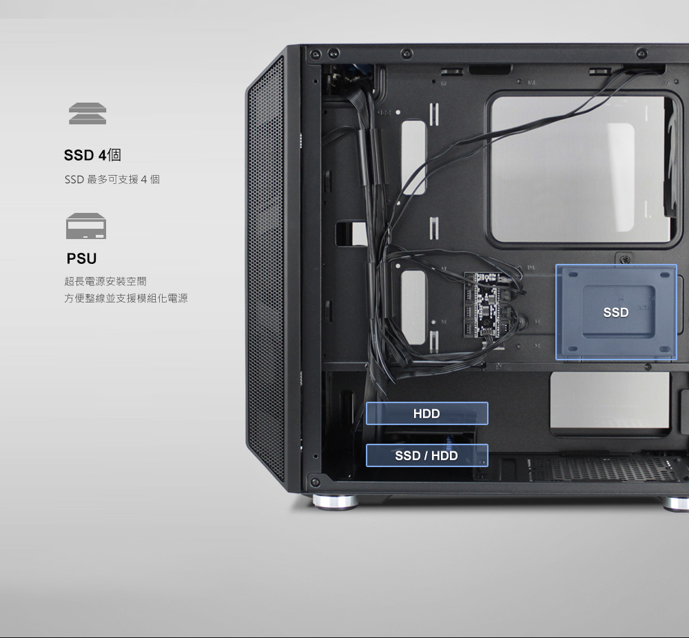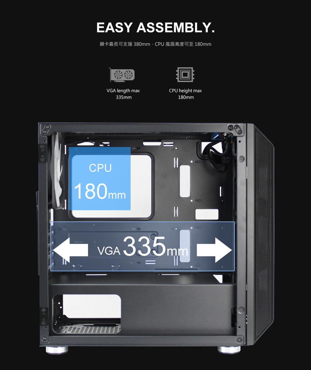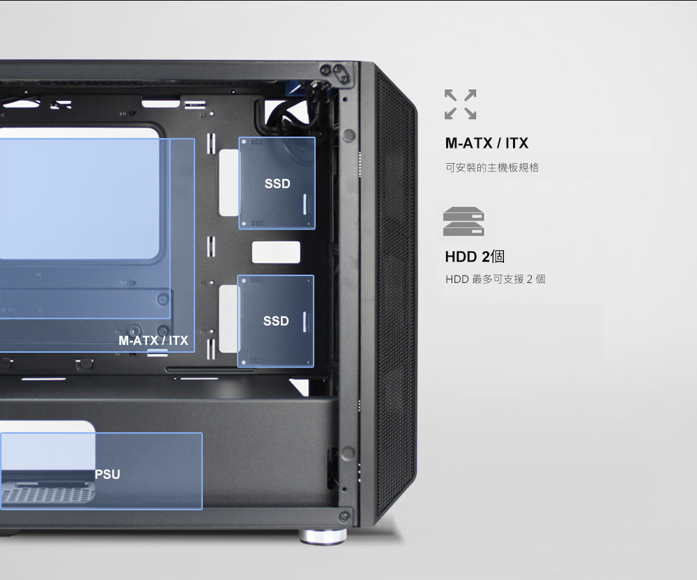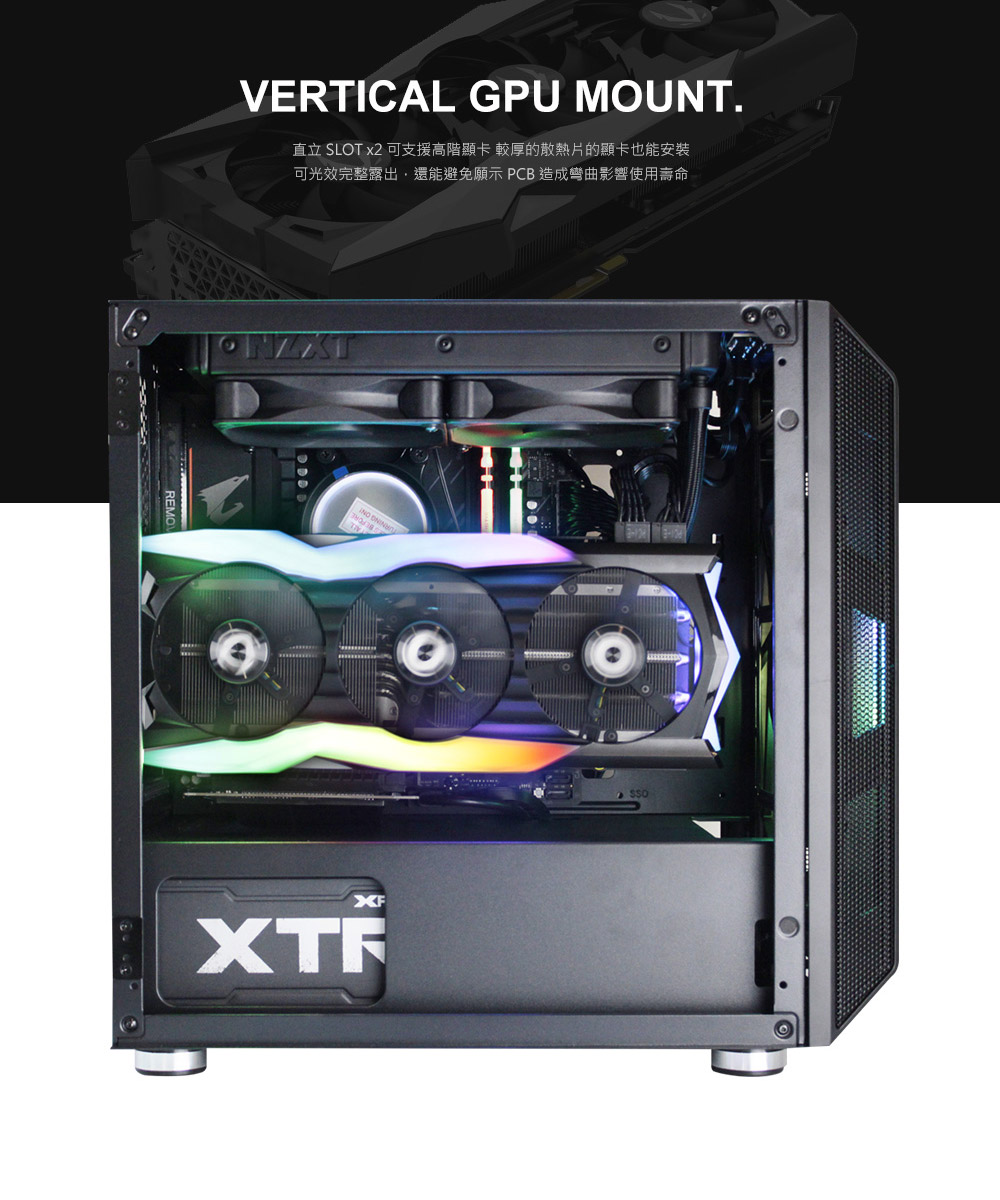 • 支援垂直顯卡 (2-SLOT)(免轉接架/需延長PCIE排線)