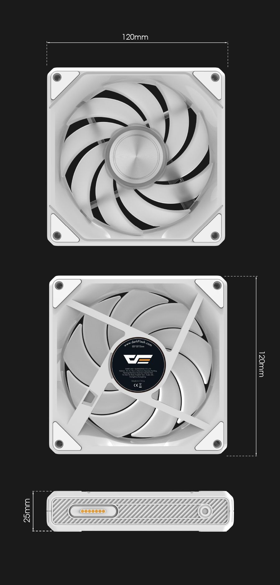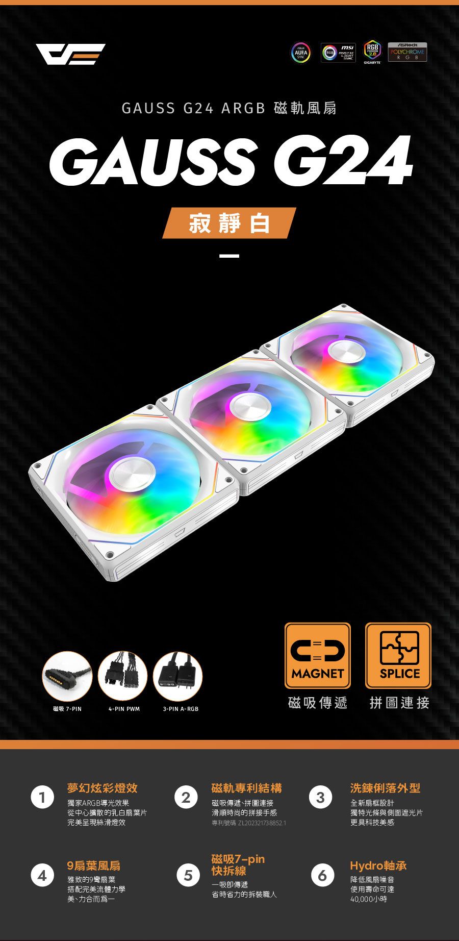 darkFlash GAUSS G24R 白 12cm 反向扇 三顆裝/A.RGB/磁吸拼接/2000RPM/3年保