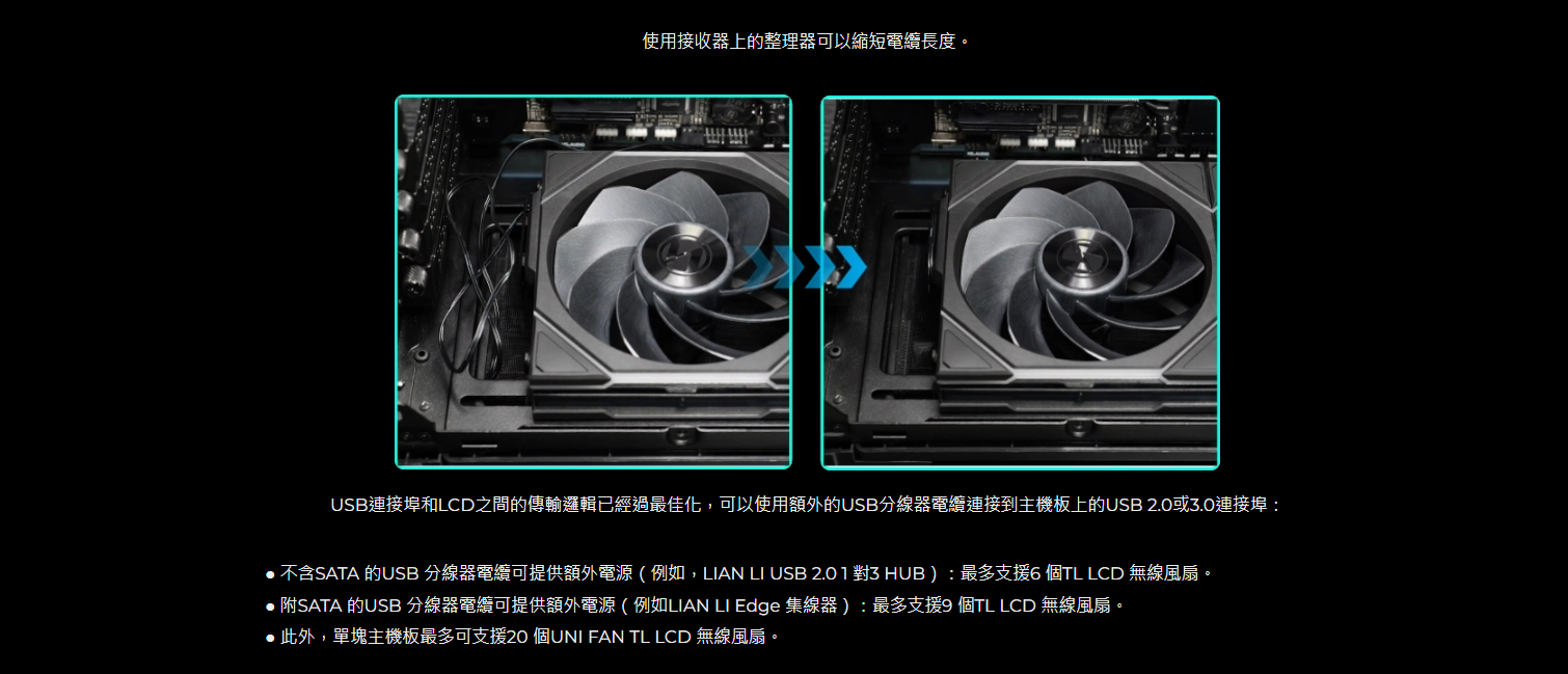✦ UNIFAN 連鎖系統可簡化電纜管理