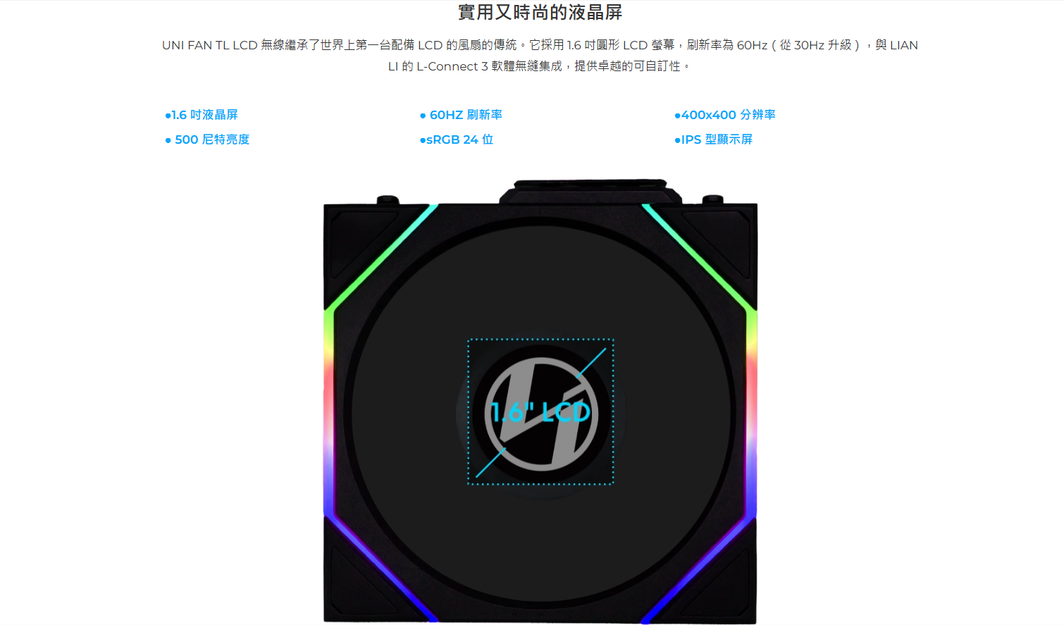 ✦ 透過 L-Connect 3 對風扇速度、燈光效果和 LCD 螢幕顯示進行全面軟體控制