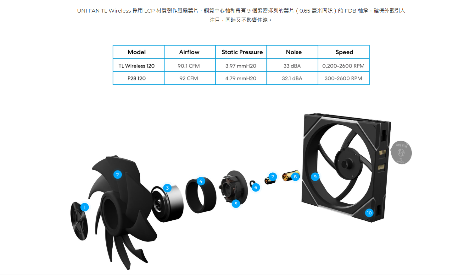 ✦ LCP(液晶聚合物)風扇葉片具有嚴格的公差