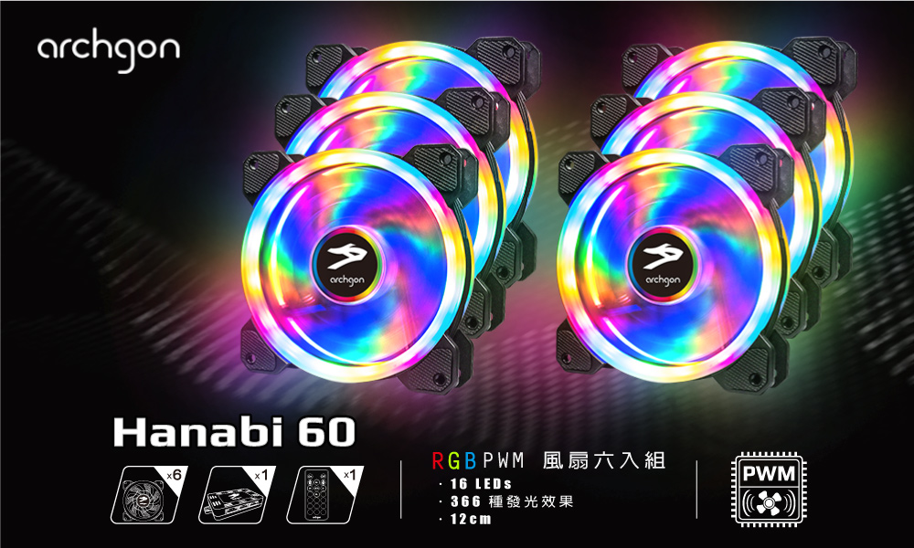 archgon亞齊慷 Hanabi 60 PWM RGB 電競風扇組(6入) (RGBCF26)
