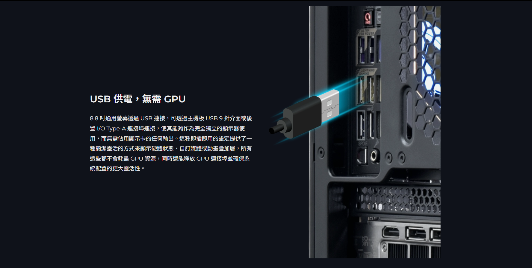 ✦ USB 即插即用,無需 GPU 輸出