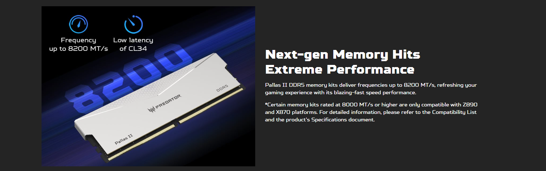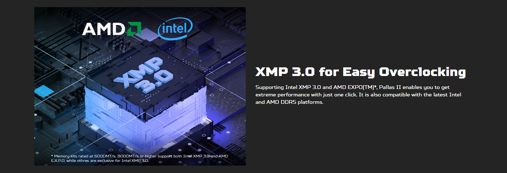 ✦ Up to 8200 MT/s✦ Low latency of CL30✦ Supports Intel XMP 3.0 & AMD EXPO*