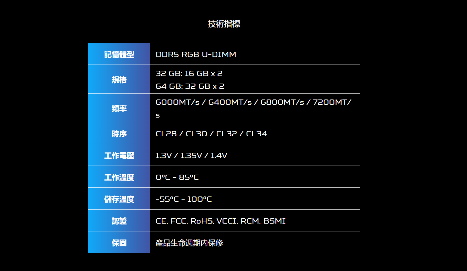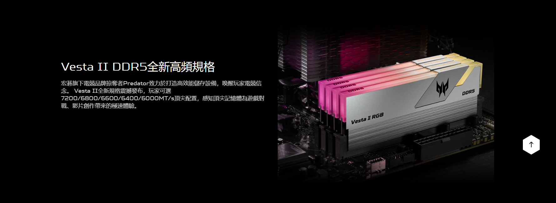 宏碁 Acer Predator Vesta II RGB 32GB(雙通16GB*2)DDR5 6000黑/CL30