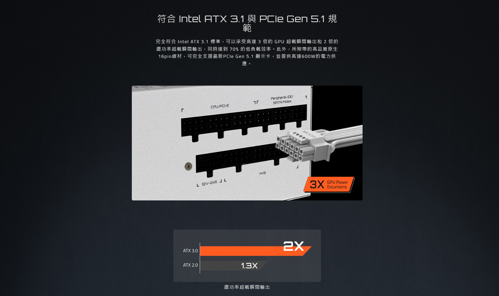 ● 符合 Intel ATX 3.1 與 PCIe Gen 5.1 規範