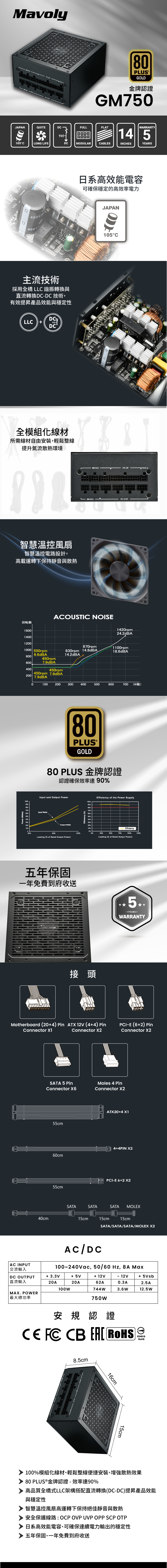Mavoly GM750 (750w/金牌全模/80Plus/五年保固)電源供應器
