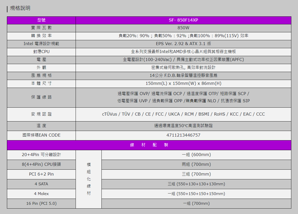 ★ ATX 3.0 / ATX 3.1 相容★ 支援Pcie 5.1 ★ 80PLUS 和 Cybenetics 白金認證★ 最佳遊戲功率