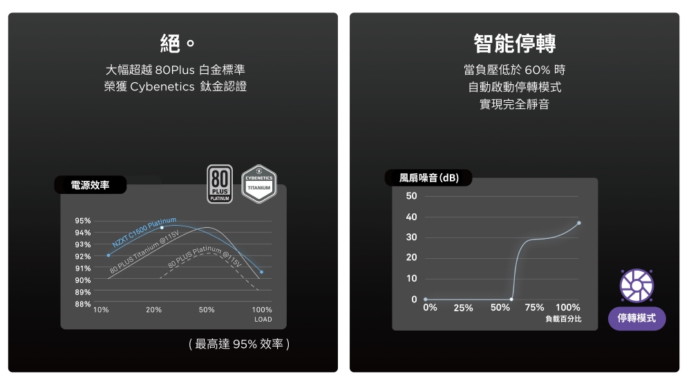 ✦Cybenetics鈦金認證,80Plus白金的絕頂轉換效率