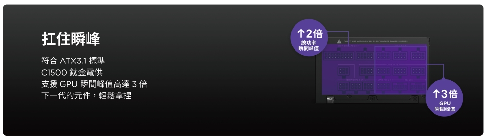 ✦ATX 3.1的安全性,輕鬆應對未來高功耗顯示卡需求,並能扛住2倍系統總功耗和 3 倍顯示卡峰值,未來世代顯示卡、高度運算的軟體、3A大作遊戲,沒有問題