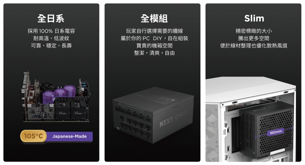 ✦100%日本電容,以高品質和穩定性著稱,讓電源在長期高負載下依然能保持最佳性能