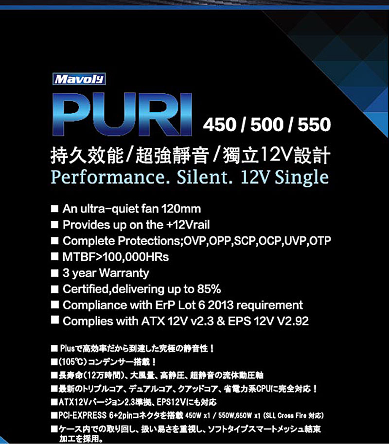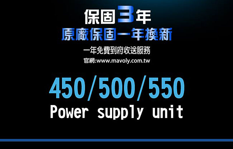 Mavoly PURI 550 550W (ATX/工業包/直出/三年保固/一年換新免費到府收送)電源供應器