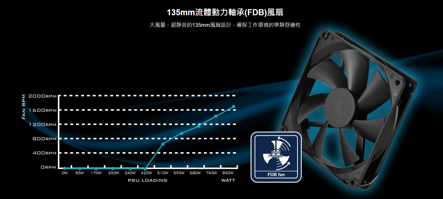 ✦ 超靜音的135mm FDB 風扇,結合風扇自動停止設計和延遲關閉功能