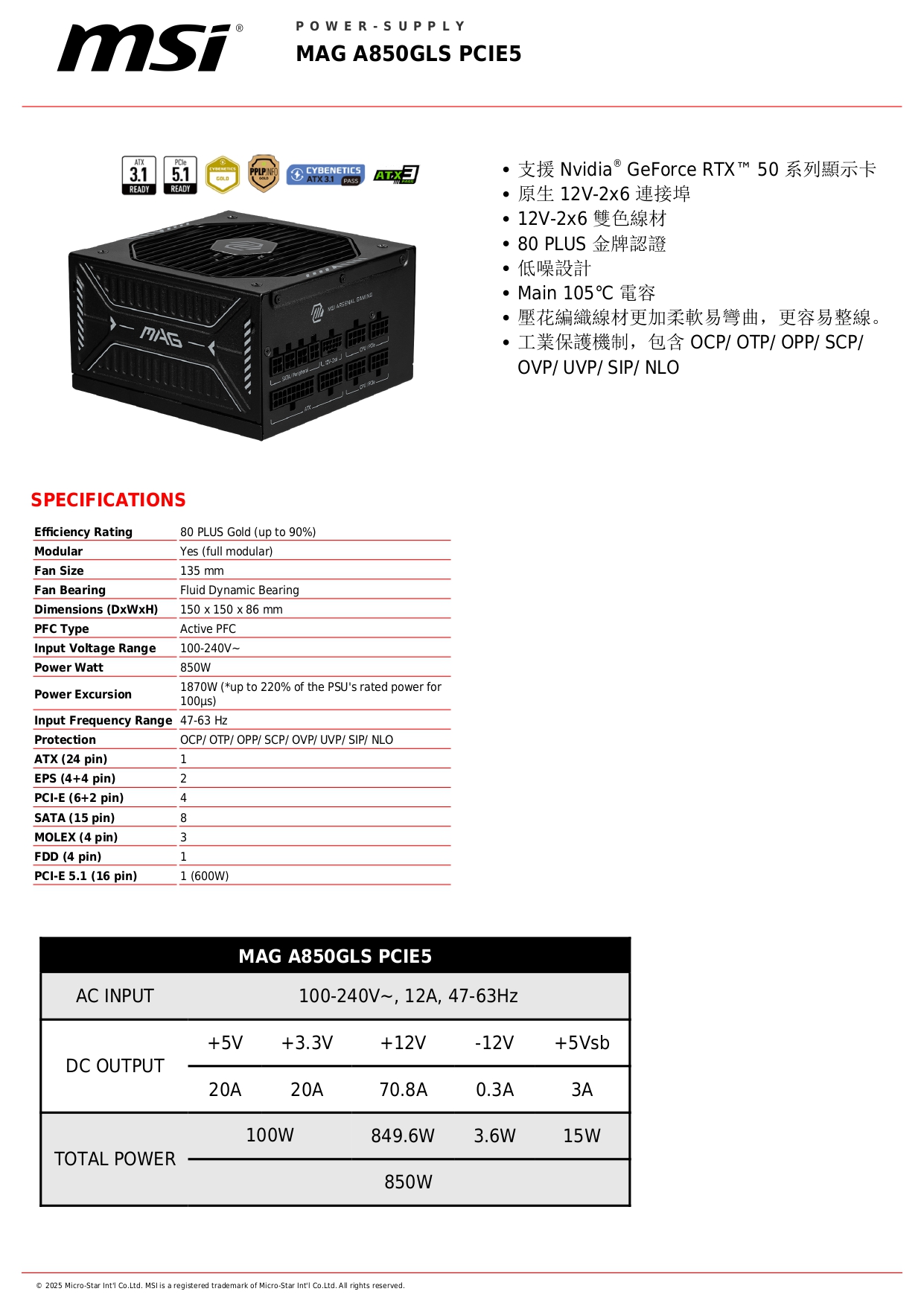 ● 支援 Nvidia ® GeForce RTX™ 50 系列顯示卡
