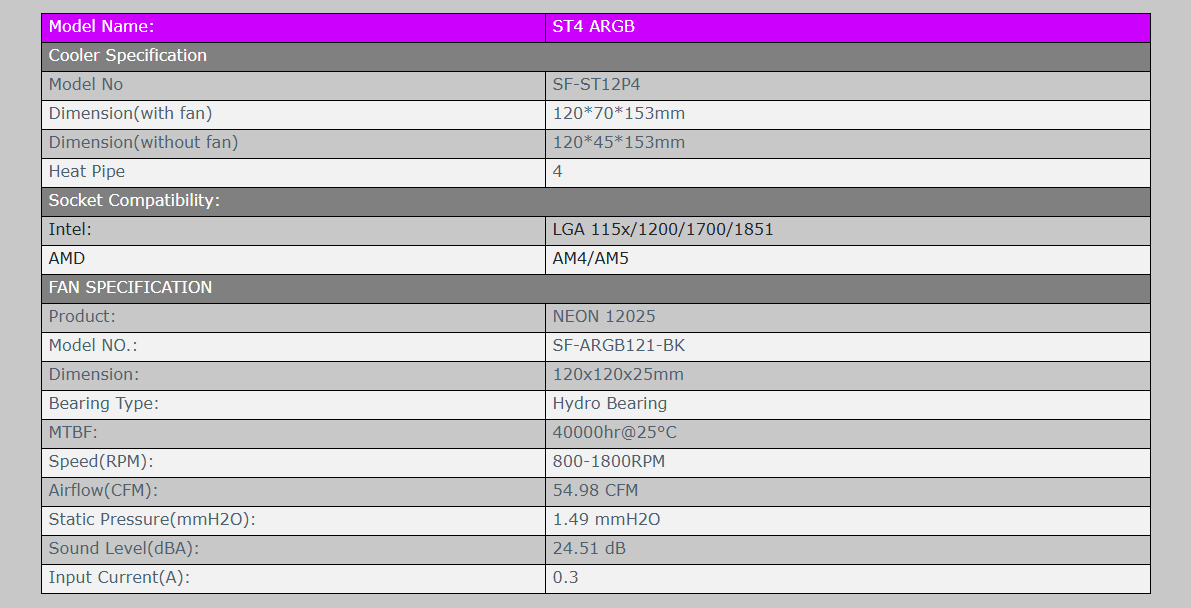 振華 ST4 ARGB 黑 散熱器/4導管/高15.3cm/黑化版/鋁製上蓋