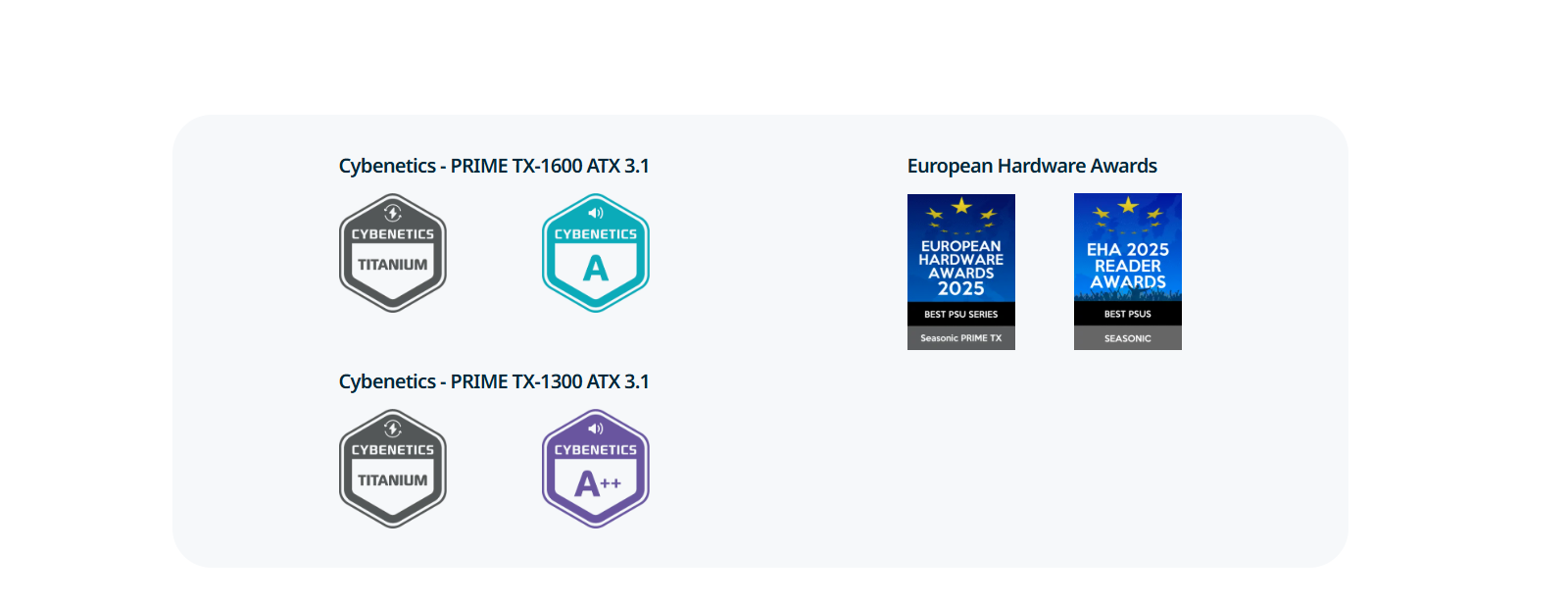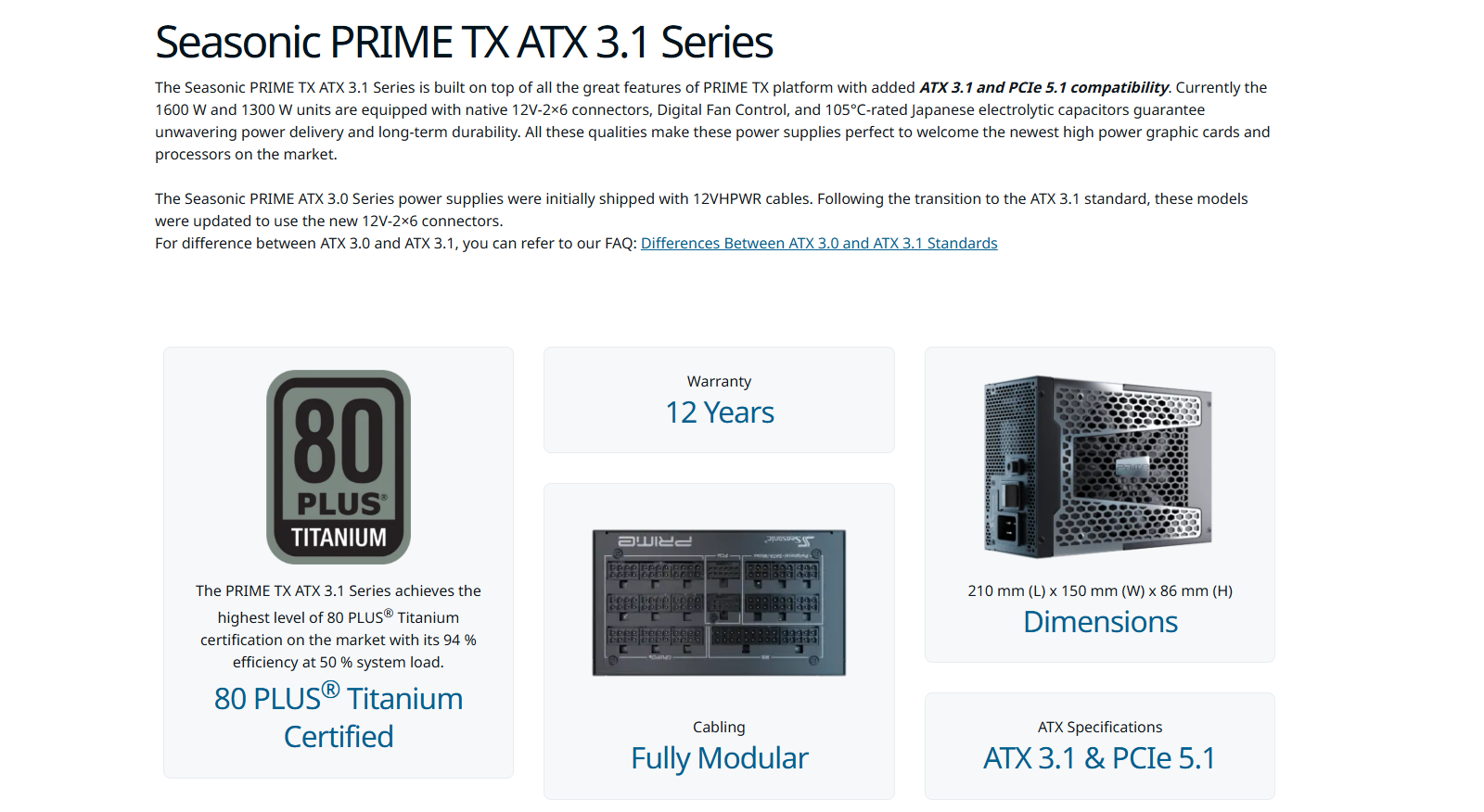 海韻 PRIME TX-1300 ATX3(1300W) 雙8/鈦金/全模組/PCIe 5.1/12年保