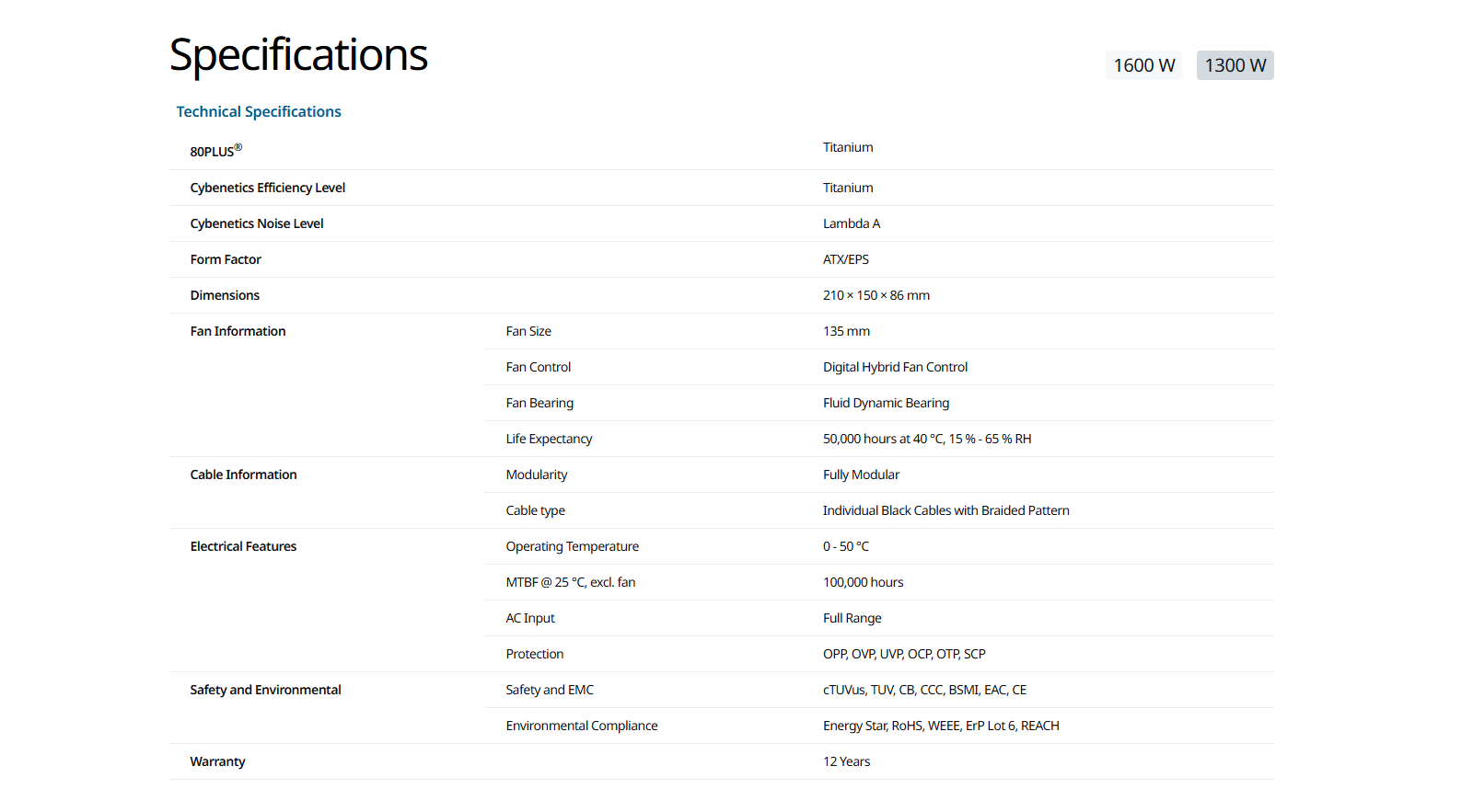 ✦ ATX 3.1 & PCIE-5.1認證 (遵照INTEL規範統稱ATX3)✦ 超高效能,80 PLUS 鈦金認證✦ 靜音A+級認證✦ Cybenetics ETA 鈦金認證和 Lambda A 認證✦ 微差負載調節✦ 三段溫控模式✦ 12年保固