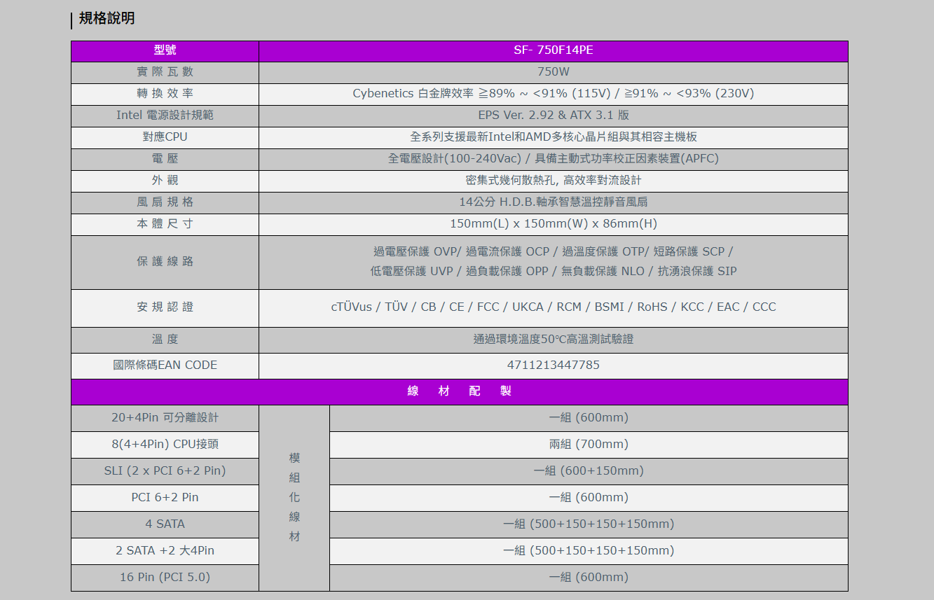 ◆ 通過歐洲高效能認證單位Cybenetics 白金牌效率,≧89% ~ <91% (115V) / ≧91% ~ <93% (230V)