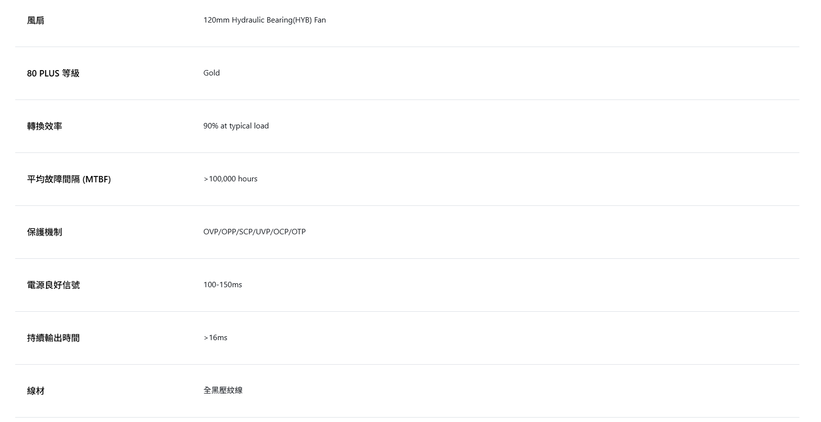 ● 80 PLUS 金牌認證