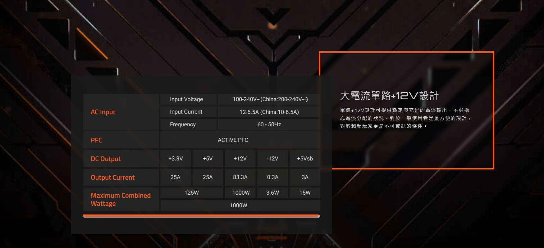 ● 大電流單路+12V設計