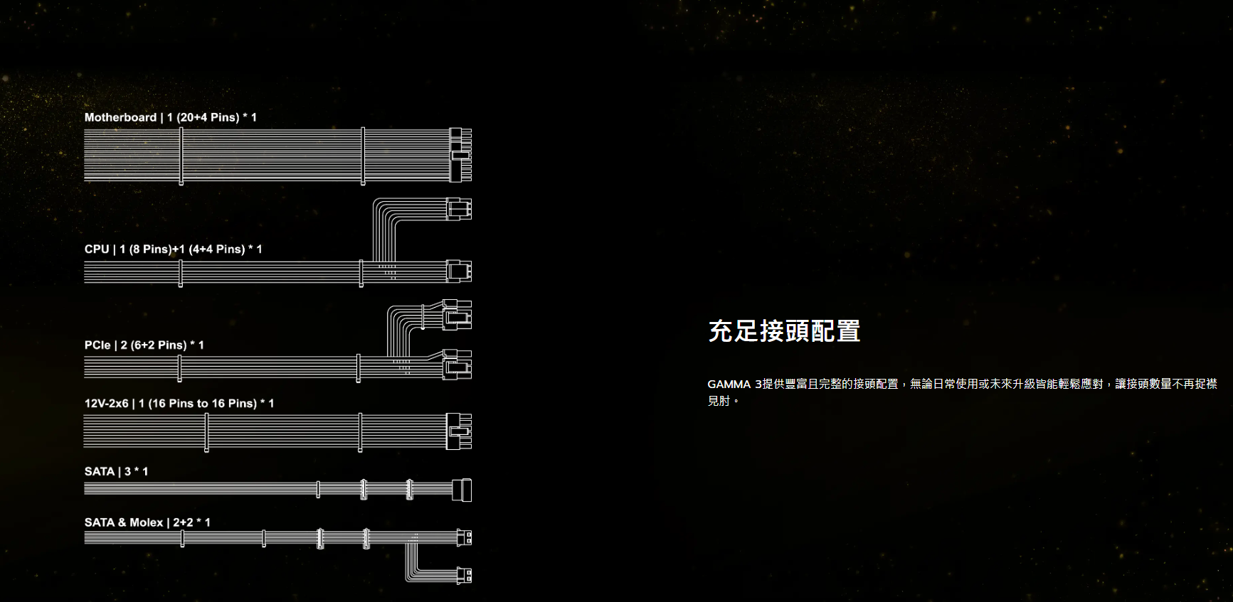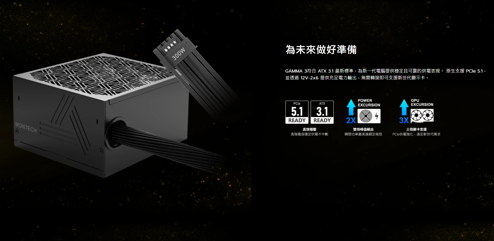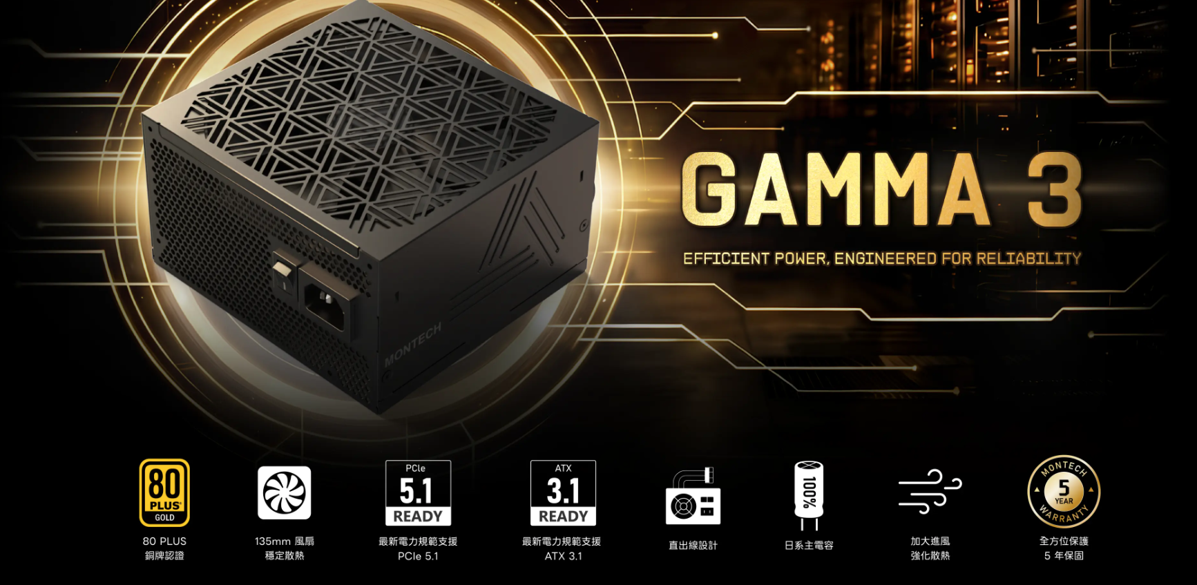 Montech GAMMA 3 850W 雙8/金牌/ATX3.1(PCIe 5.1)/主日系/壓紋線/5年保