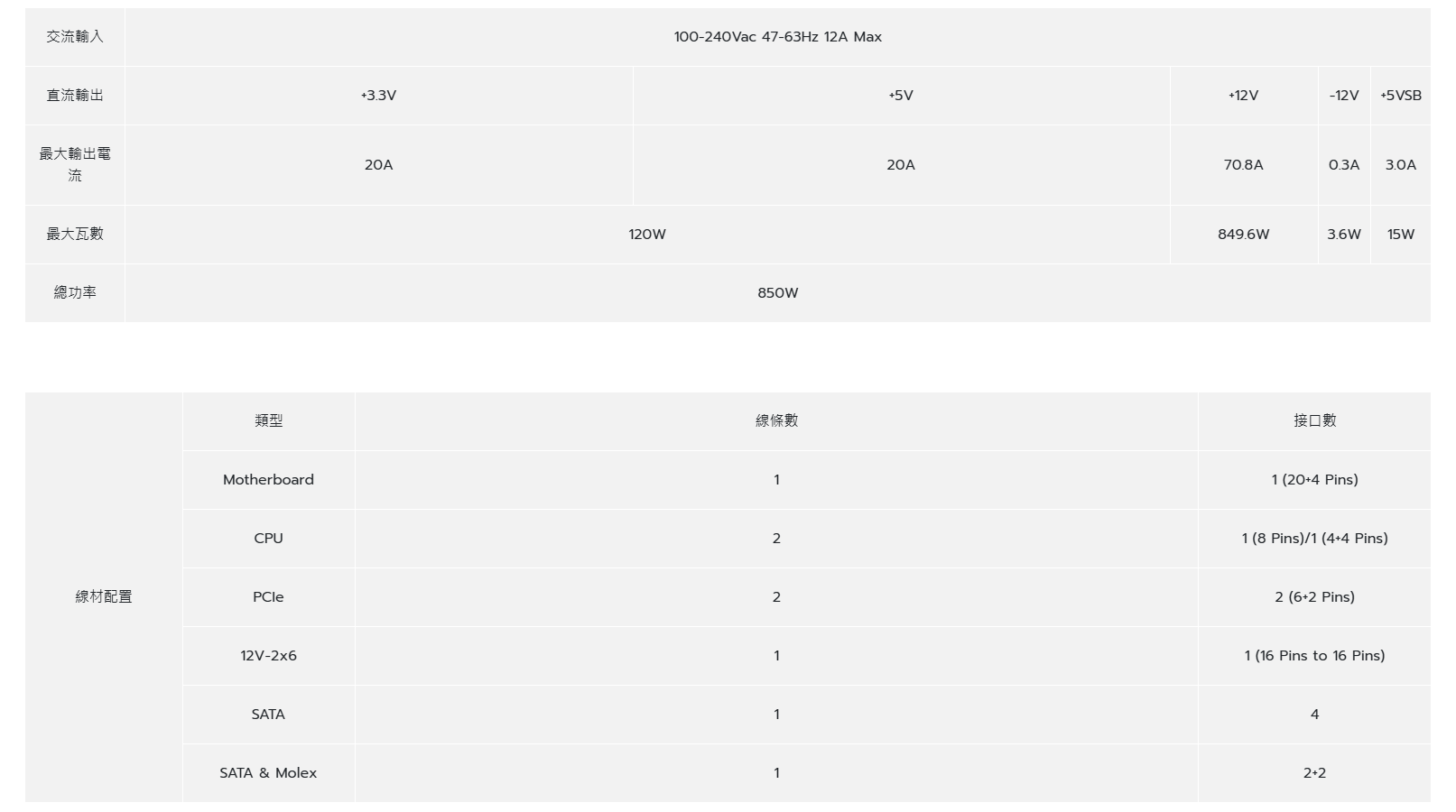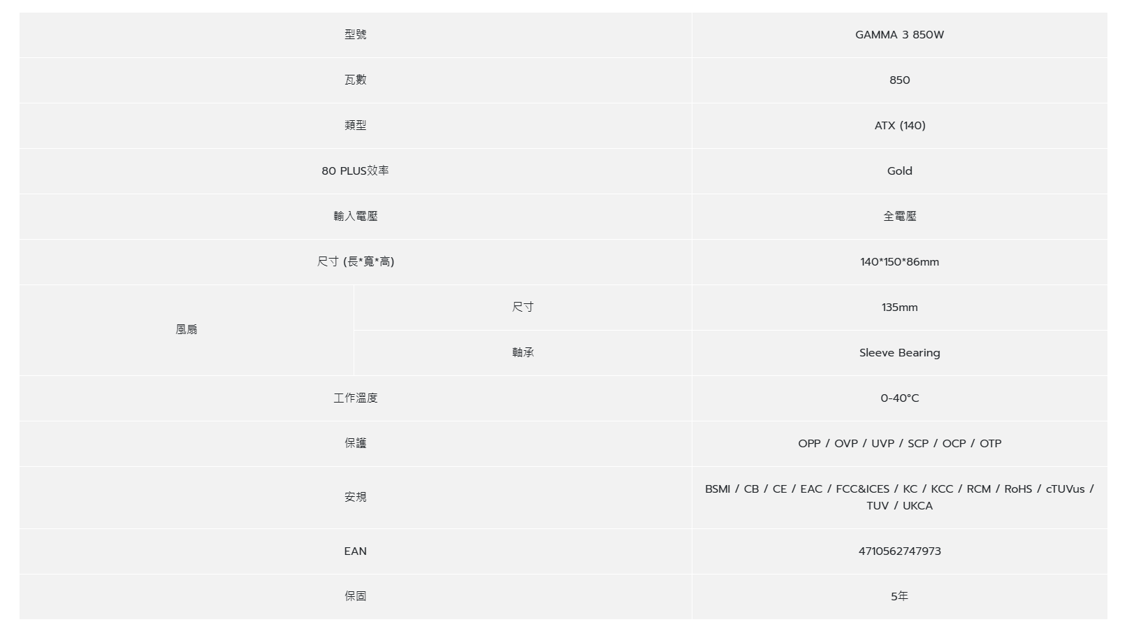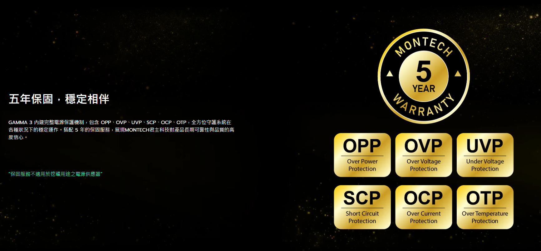 Montech GAMMA 3 850W 雙8/金牌/ATX3.1(PCIe 5.1)/主日系/壓紋線/5年保