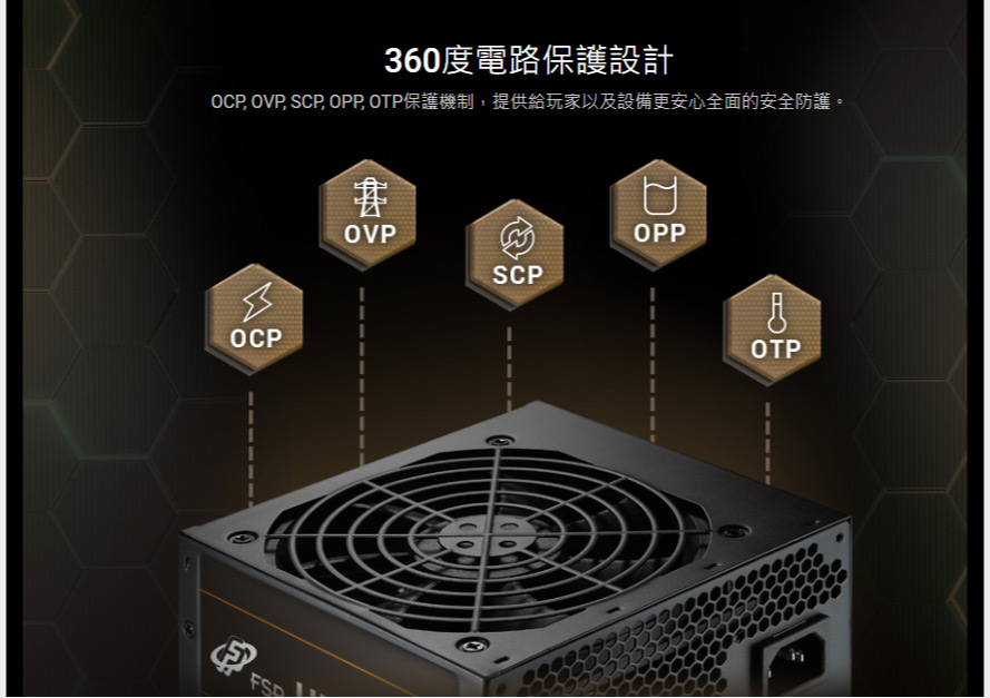 多重保護機制:OCP、OVP 、 SCP 、 OPP 、 OTP