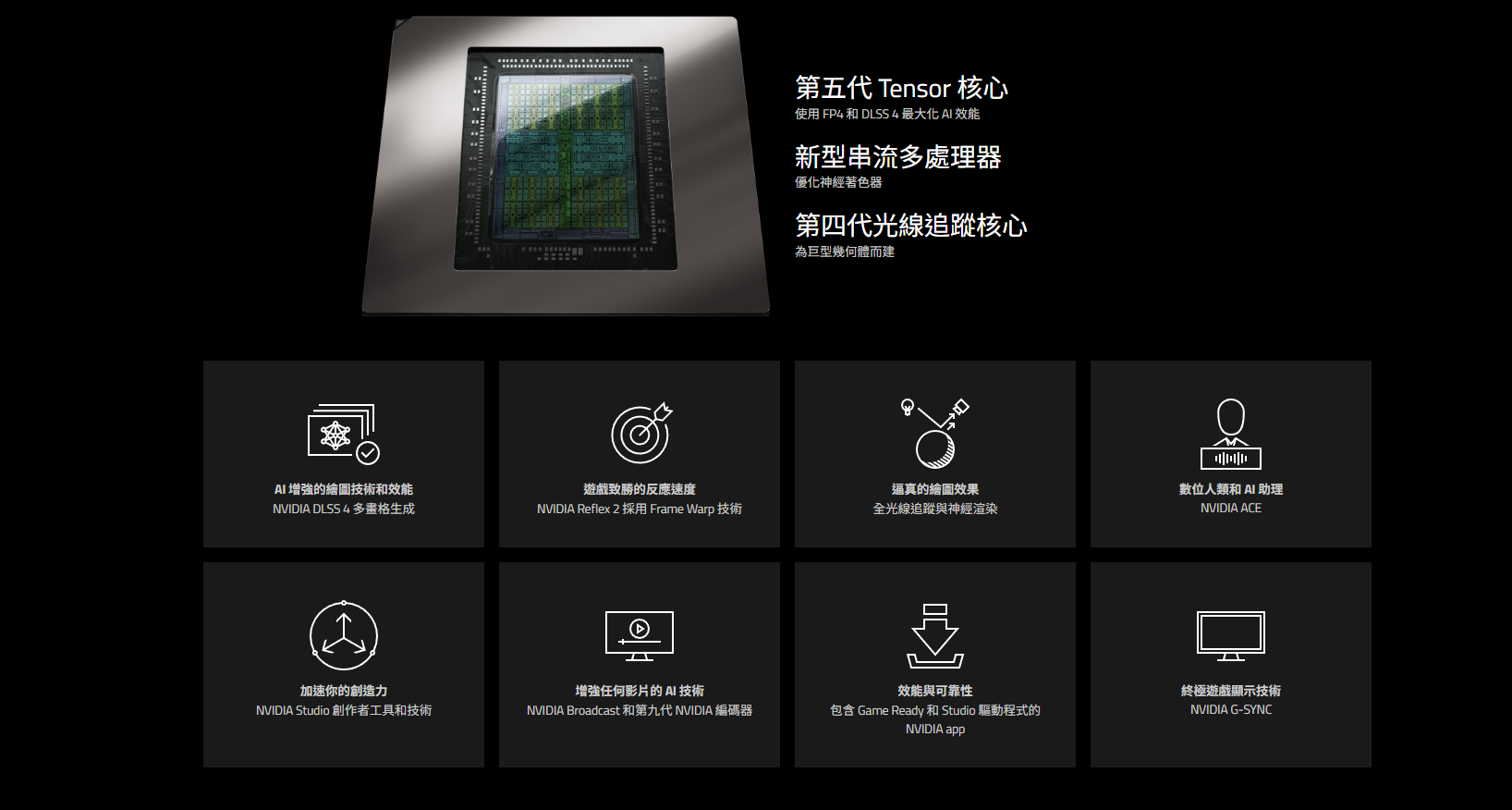 ● 採用 NVIDIA Blackwell晶片架構與 DLSS4