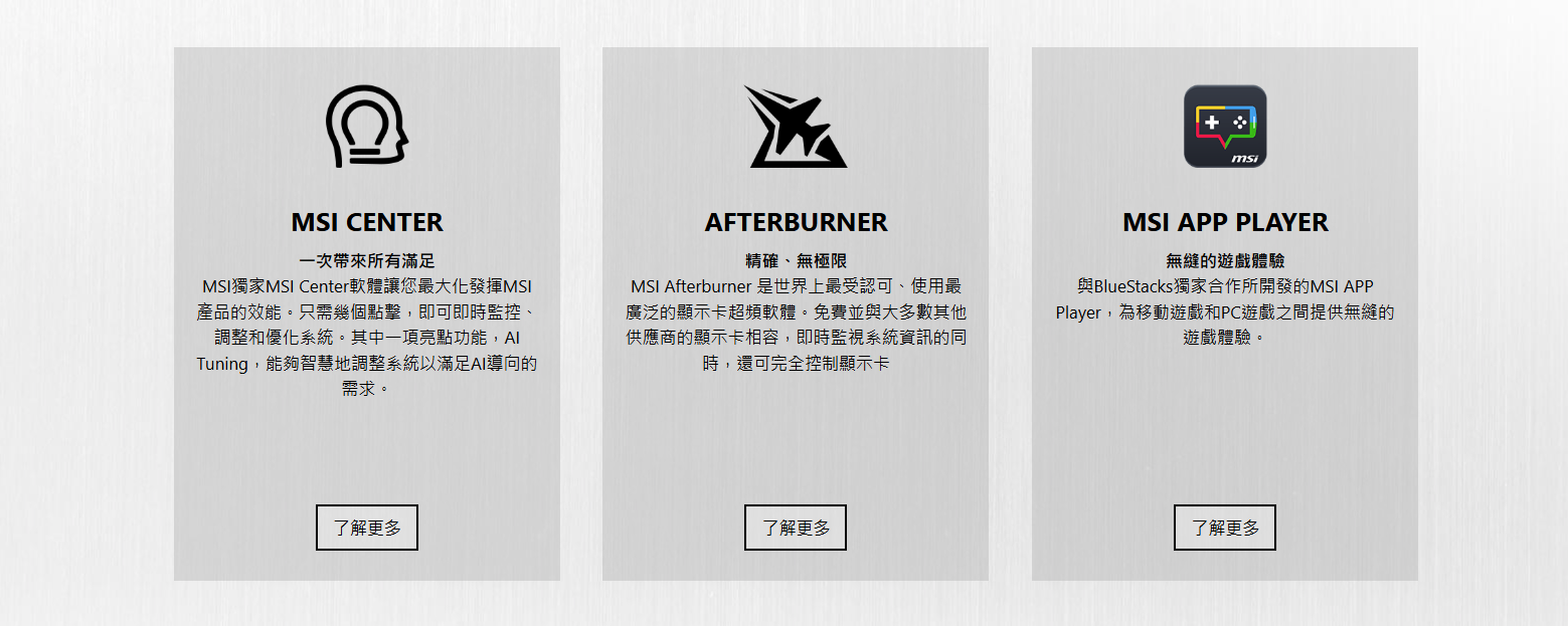 ● MSI Center: 獨家的 MSI Center 軟體讓您可以即時監控、調整和優化 MSI 產品。