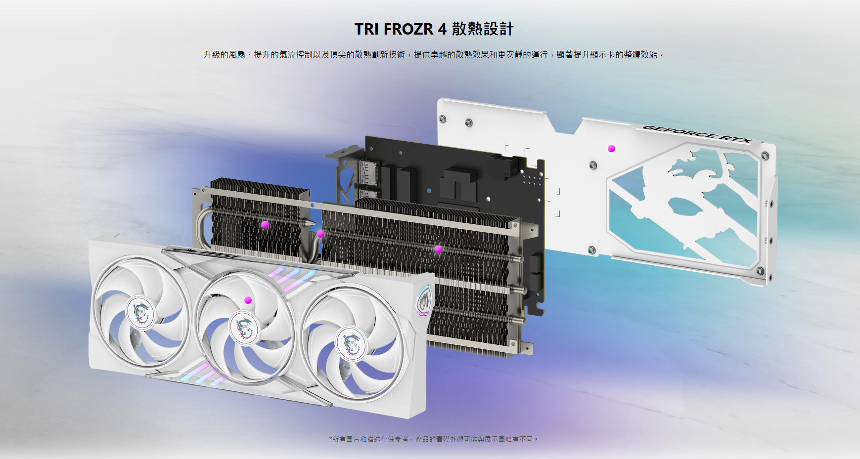 ● TRI FROZR 4 散熱設計: 升級的風扇、氣流控制和散熱設計可提供卓越的冷卻效果和更安靜的運轉。