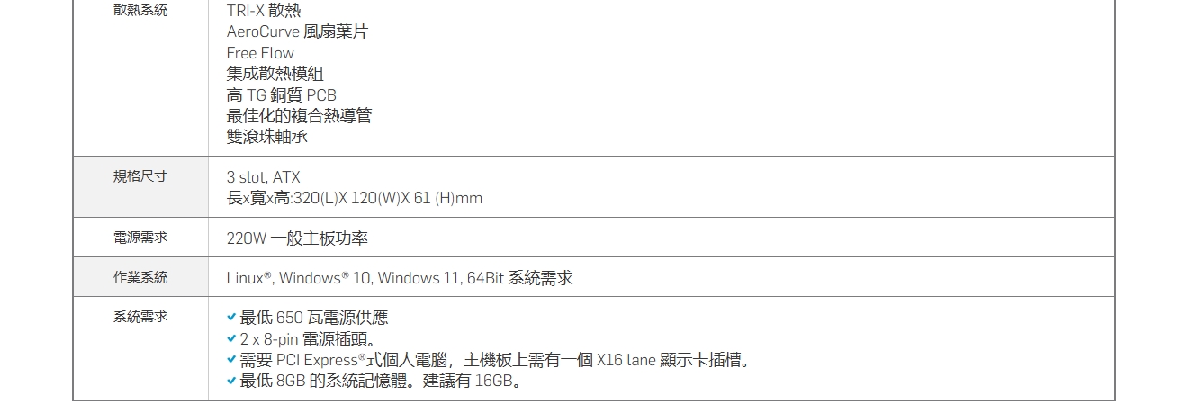 「整合式散熱」是一種先進的散熱管理解決方案,旨在為顯示卡的所有重要元件提供有效的散熱。這種創新的設計能確保與 GPU、記憶體模組和 VRM 直接接觸,提供均勻的熱調節。整合式散熱模組能處理所有主要熱源,協助維持穩定的操作溫度,改善整體系統性能和可靠性。非常適用於遊戲、內容創作和超頻等要求嚴苛的工作量,確保在持續使用時獲得最佳的熱效率。