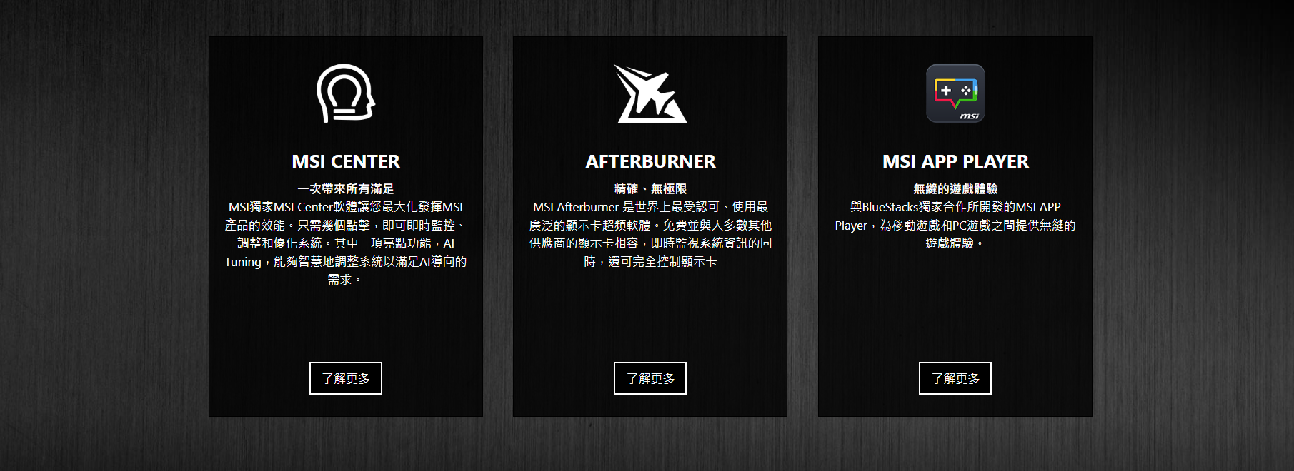 ● MSI Center軟體:微星獨家MSI Center讓您即時監控、調整和優化MSI產品