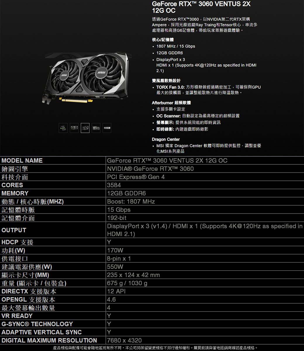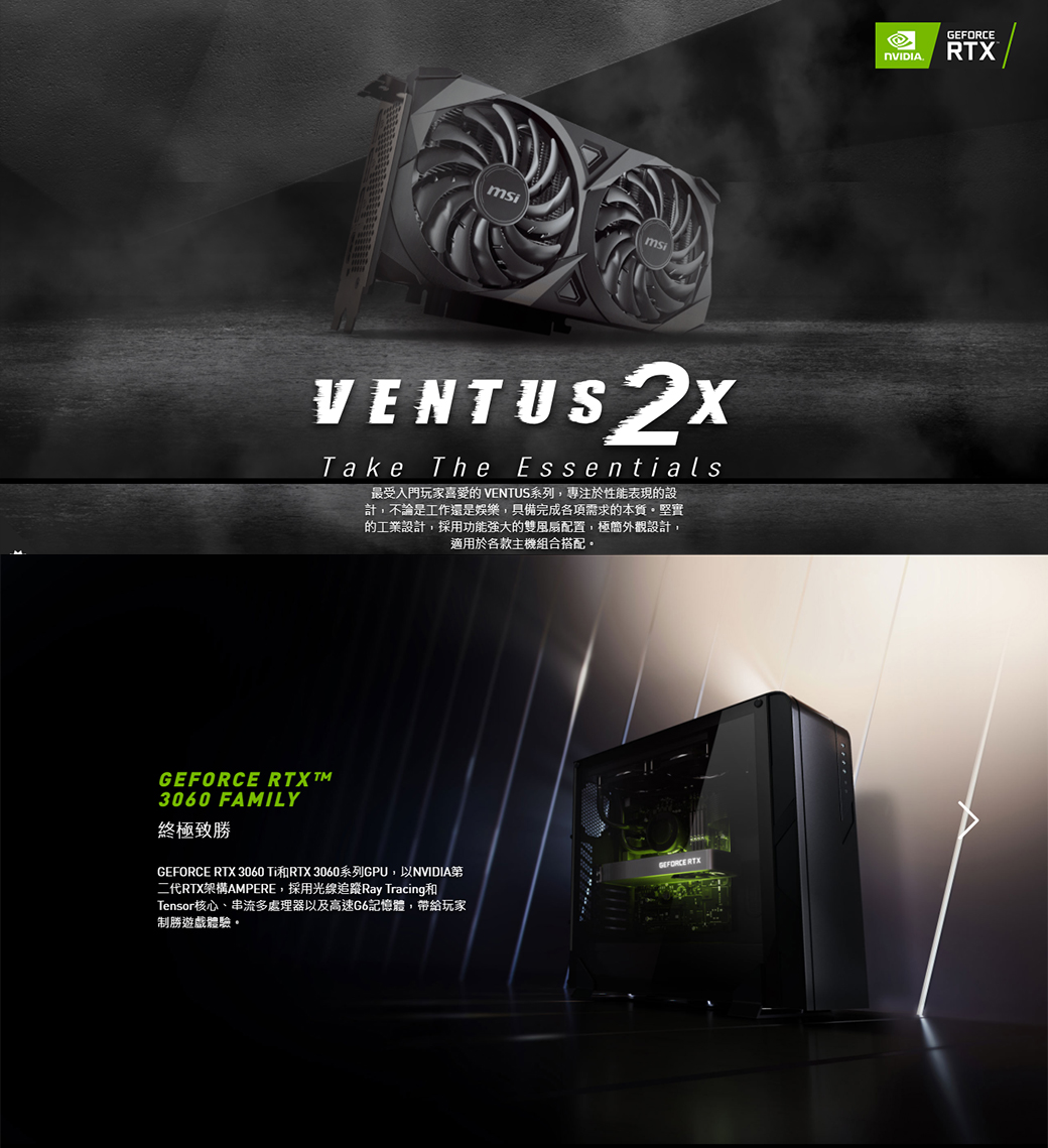 微星 GeForce RTX 3060 VENTUS 2X 12G OC 顯示卡