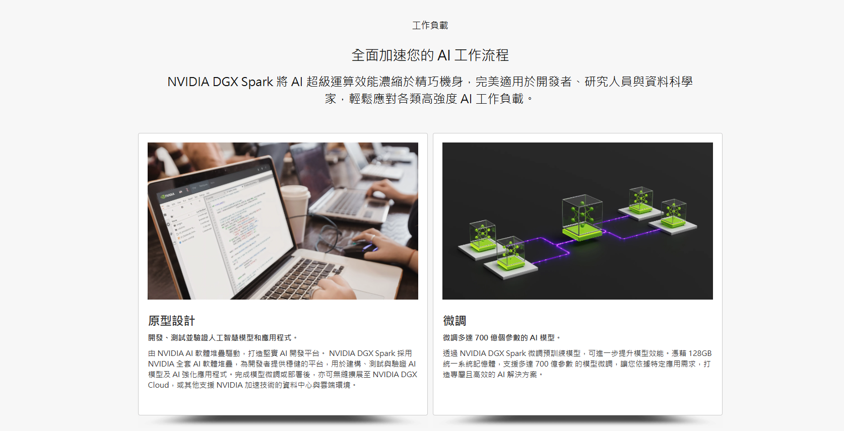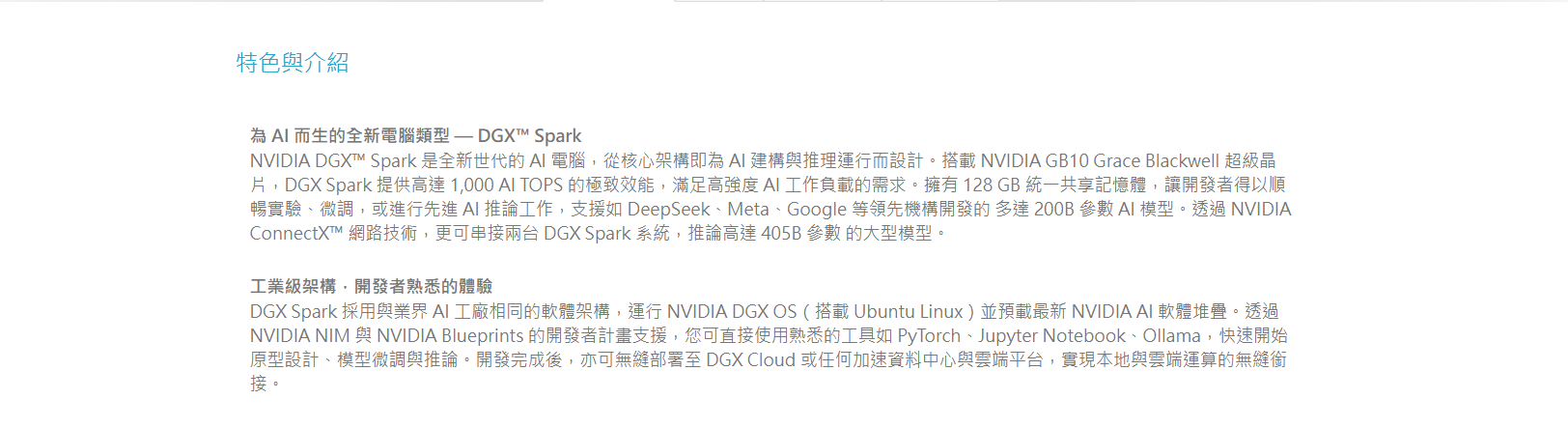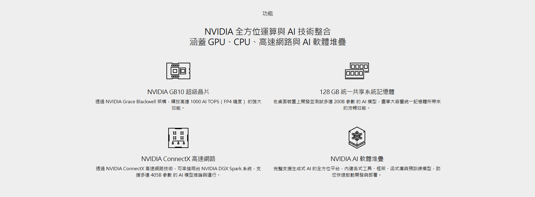 ✦ 搭配 NVIDIA ConnectX 網路可串接兩台 DGX Spark,擴展至 405B 參數模型