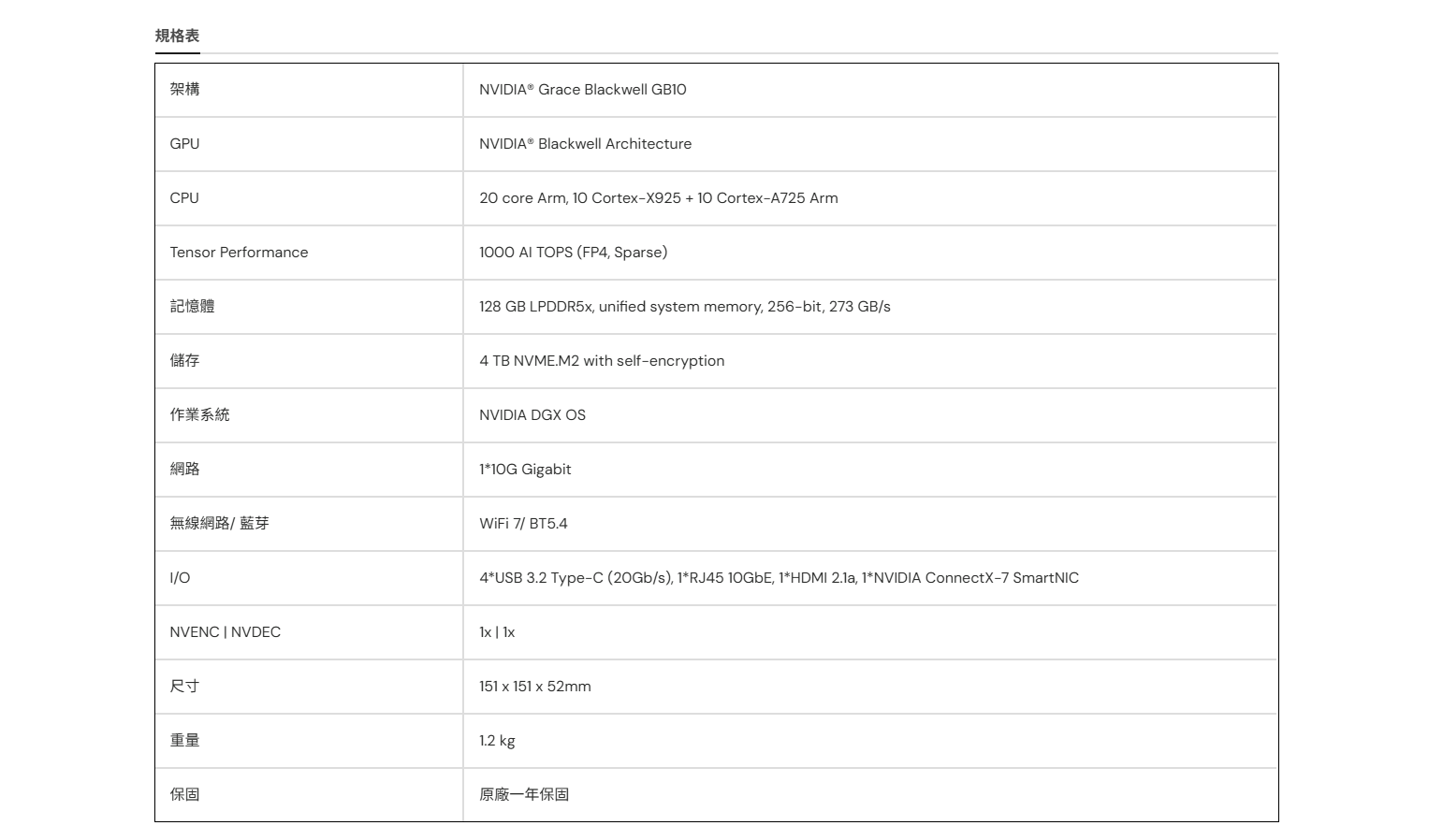 ✦ 搭載 NVIDIA® GB10 Grace Blackwell 超級晶片: