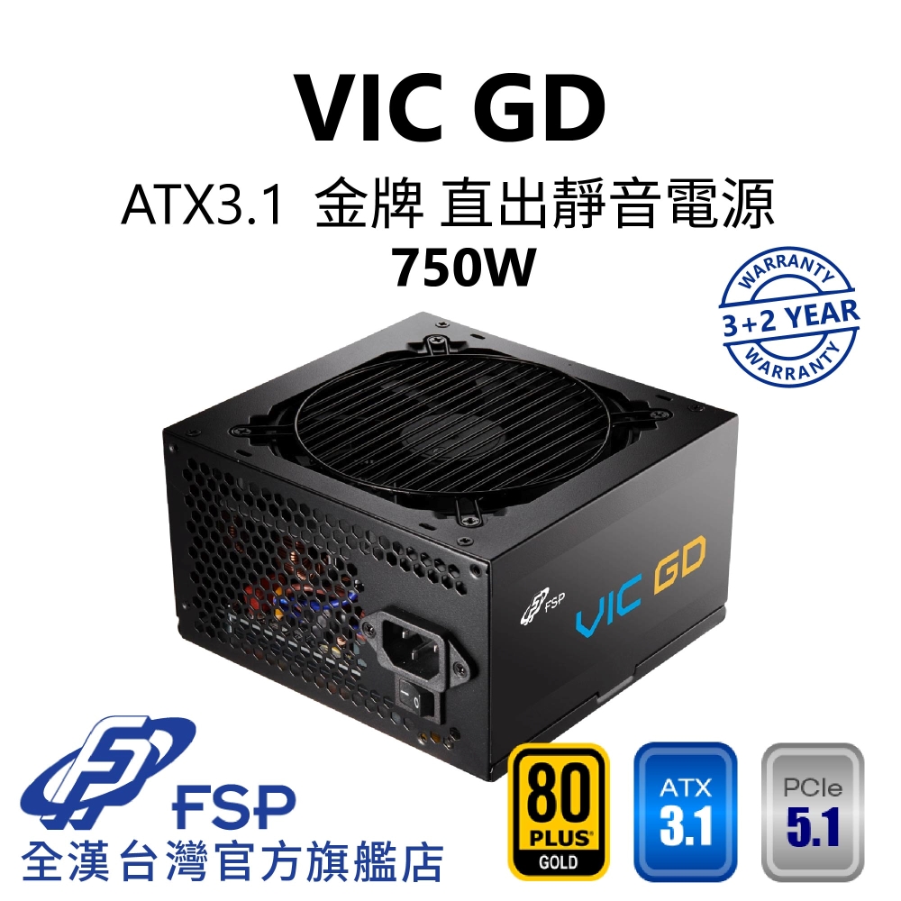 全漢 VIC GD 750W 雙8/金牌/直出線/ATX3.1/壓紋線/3+2年(憑發票)